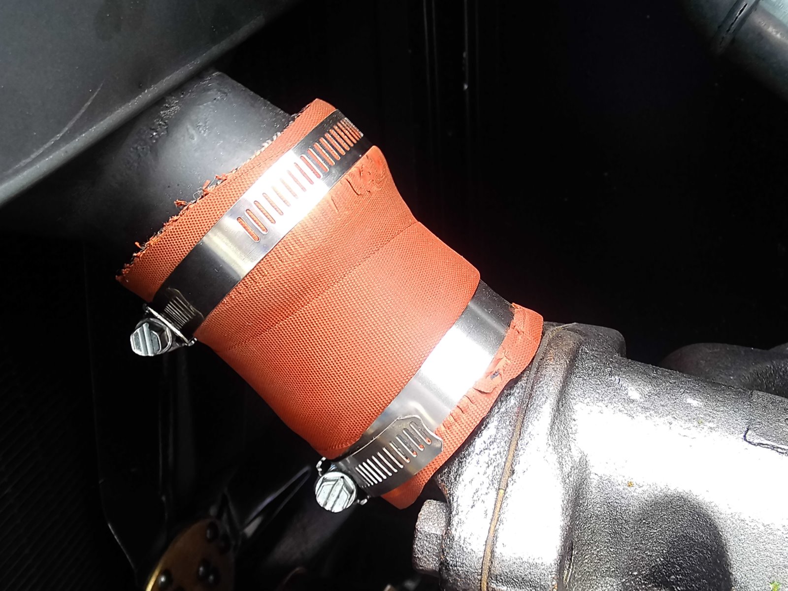 Note rear panel of the upper tank on the right of the photo, the outlet is slightly offset left-to-right, in relation to the radiator support rod to the dash.
