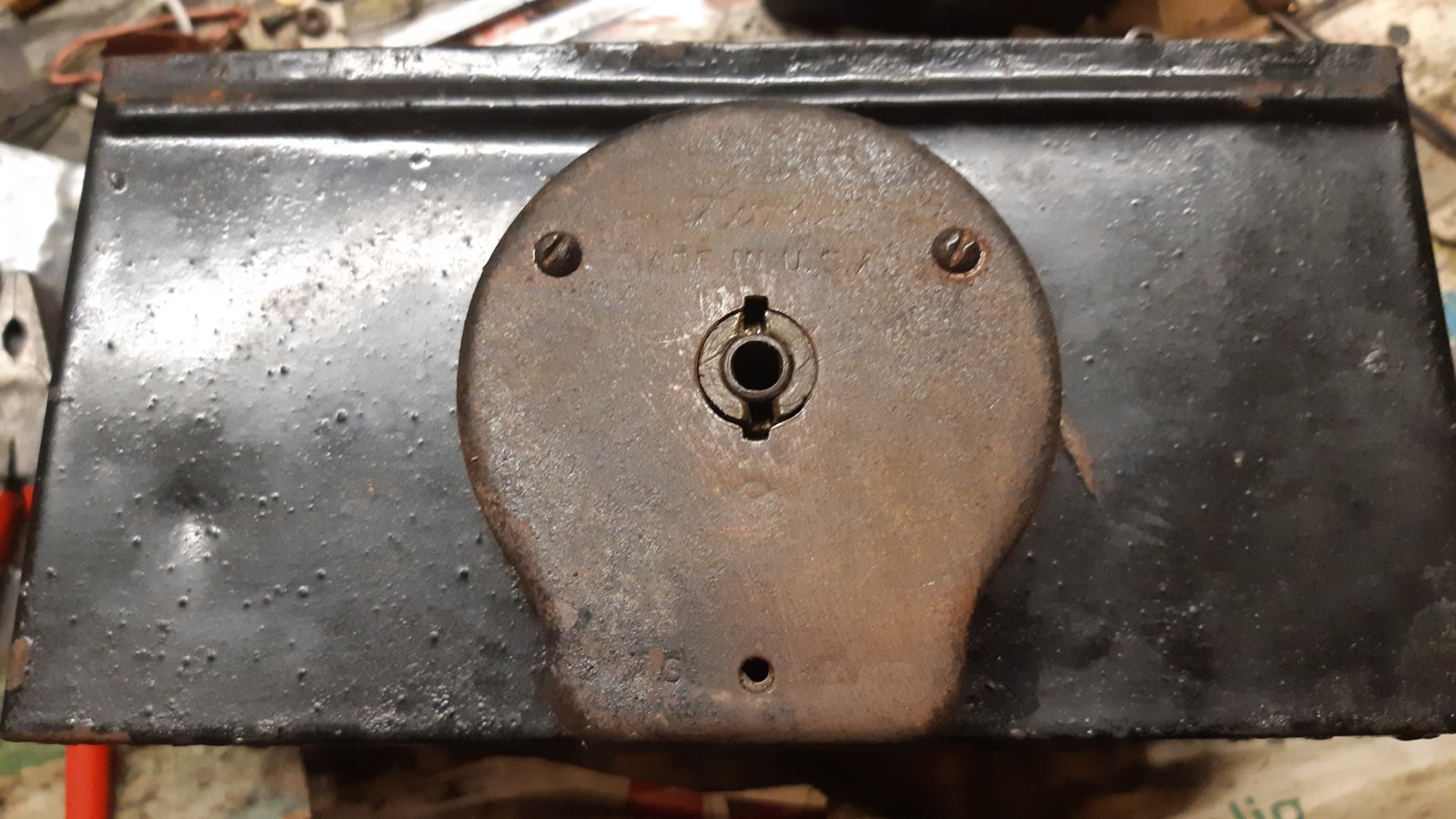 Bought this unrestored hand crank coil tester in Buffalo a few weeks back. Removed the black overpainting to get down to the original blue hue. I removed all the magnets to clean the flywheel and recharge the magnets. Also had to take the Jewel ammeter apart and reset the main pivot shaft to get it working. Just need to replace the four insulated spacers and rebuild the coil receiving box to get it up and going.
