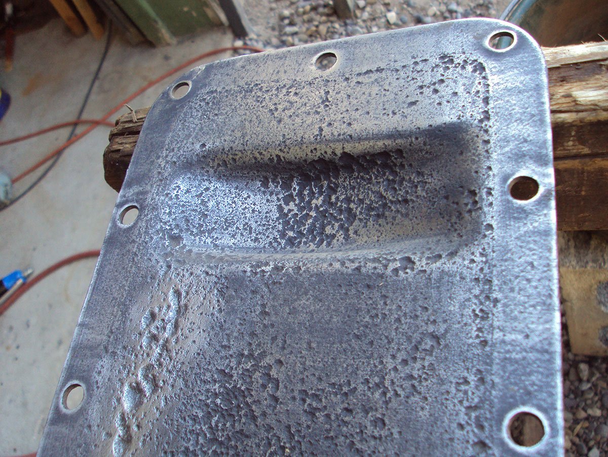 Acid damage in the bottoms of the dips is very common. Sometimes the only thing sealing them up is dirt on the outside of the pan.