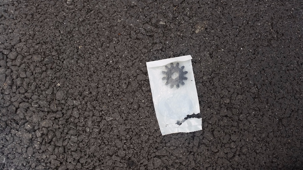 The gear is fiber and is missing it's teeth. The driving gear on the wheel is very worn. I think that if you tried to mate a new driven gear it will wear the teeth very quickly. The piece that fits on the wheel is somewhat common in the US, the fiber gear not so much.