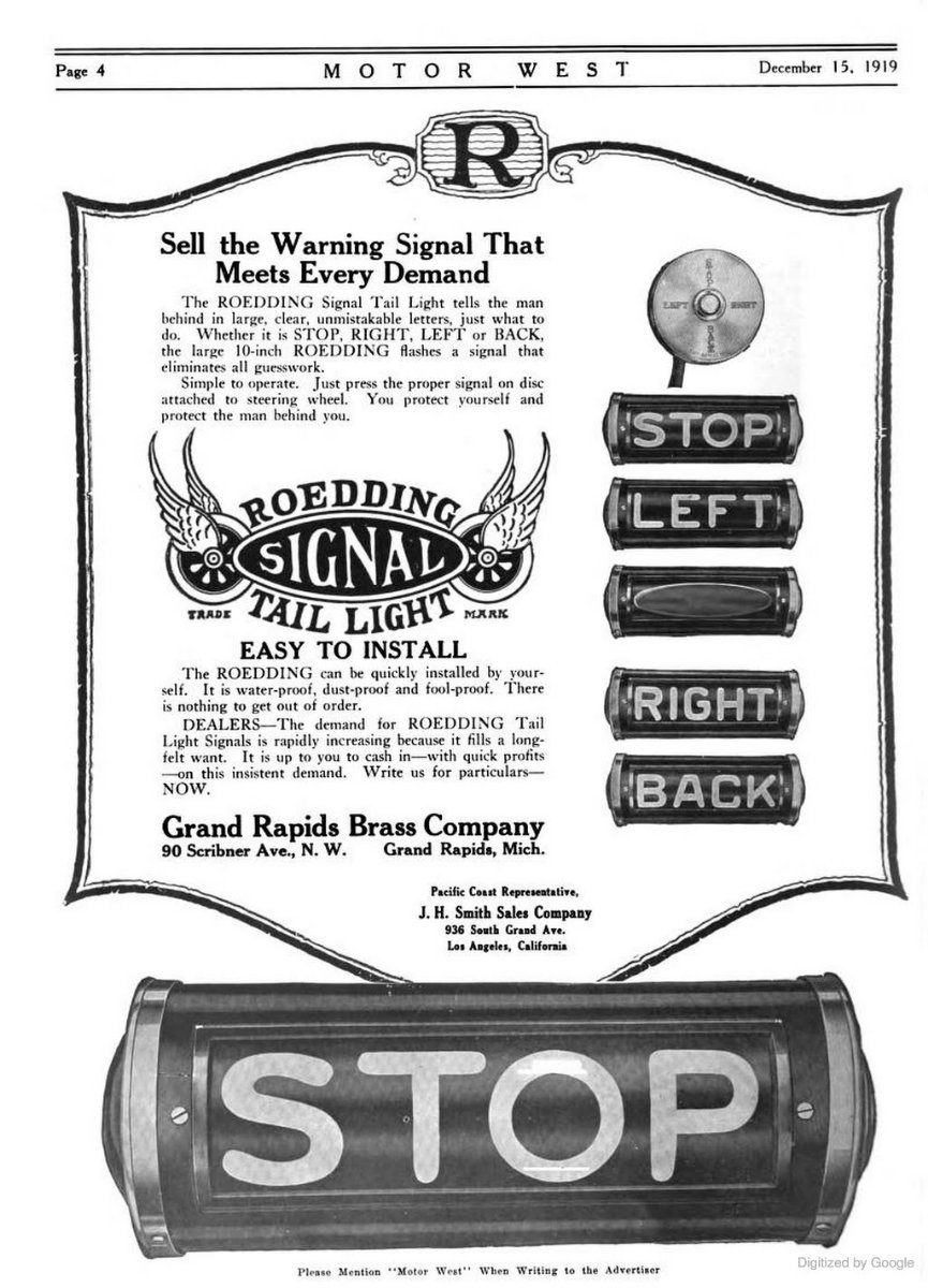 I am looking for information of the Roedding Tailight shown in this ad in Motor West magazine in 1919