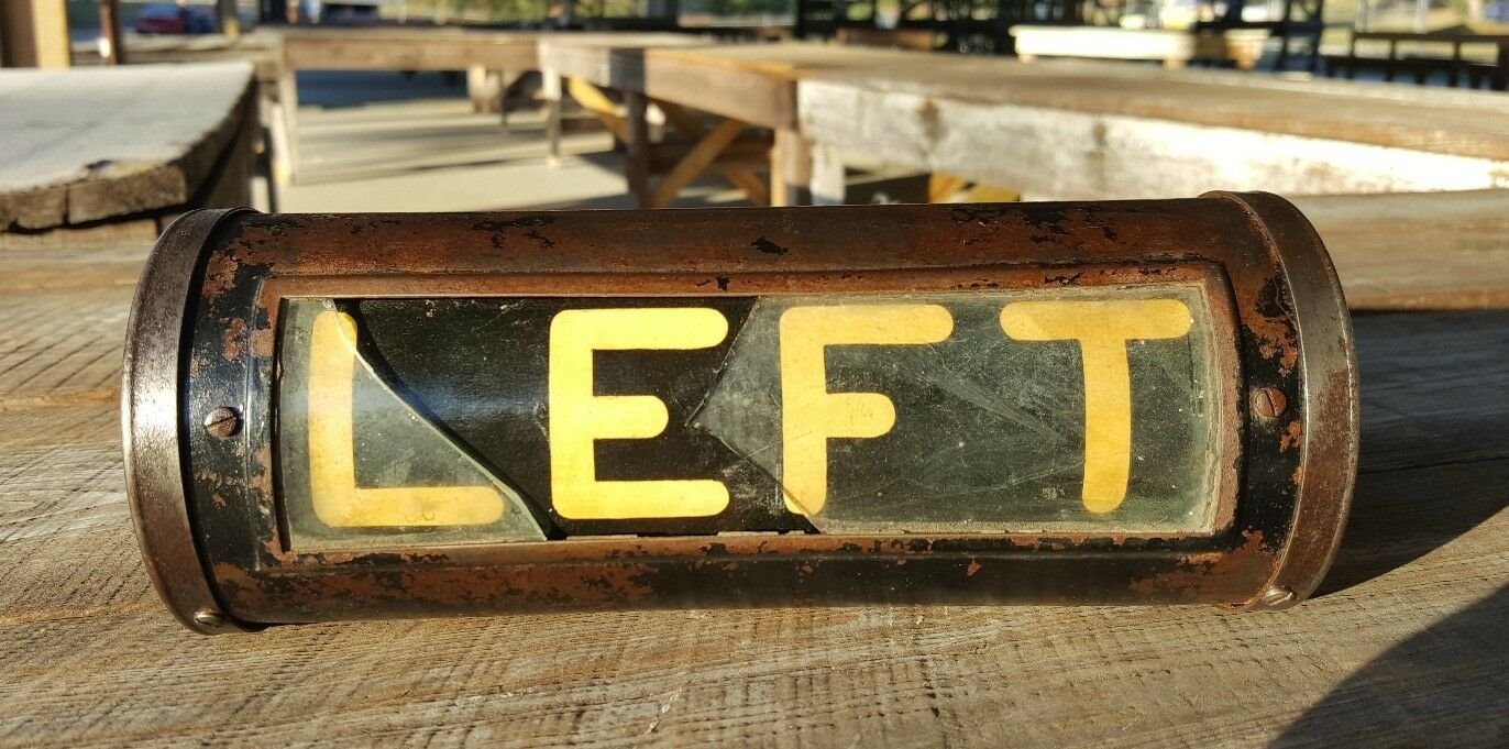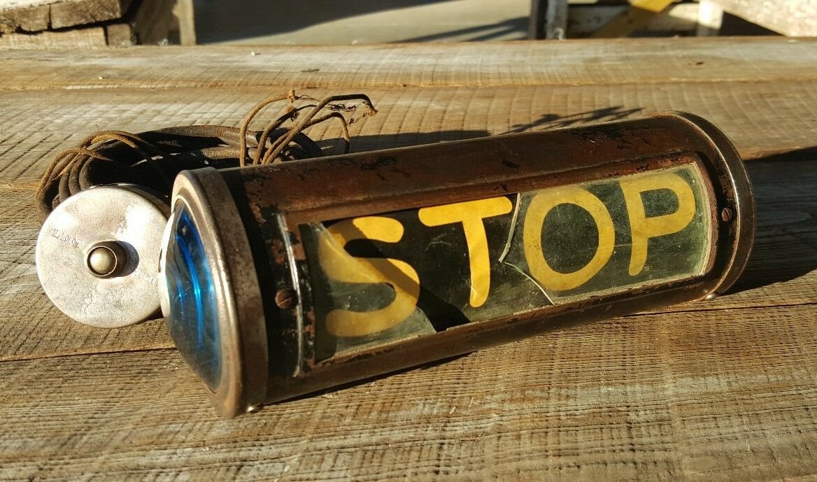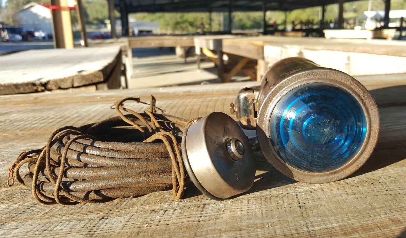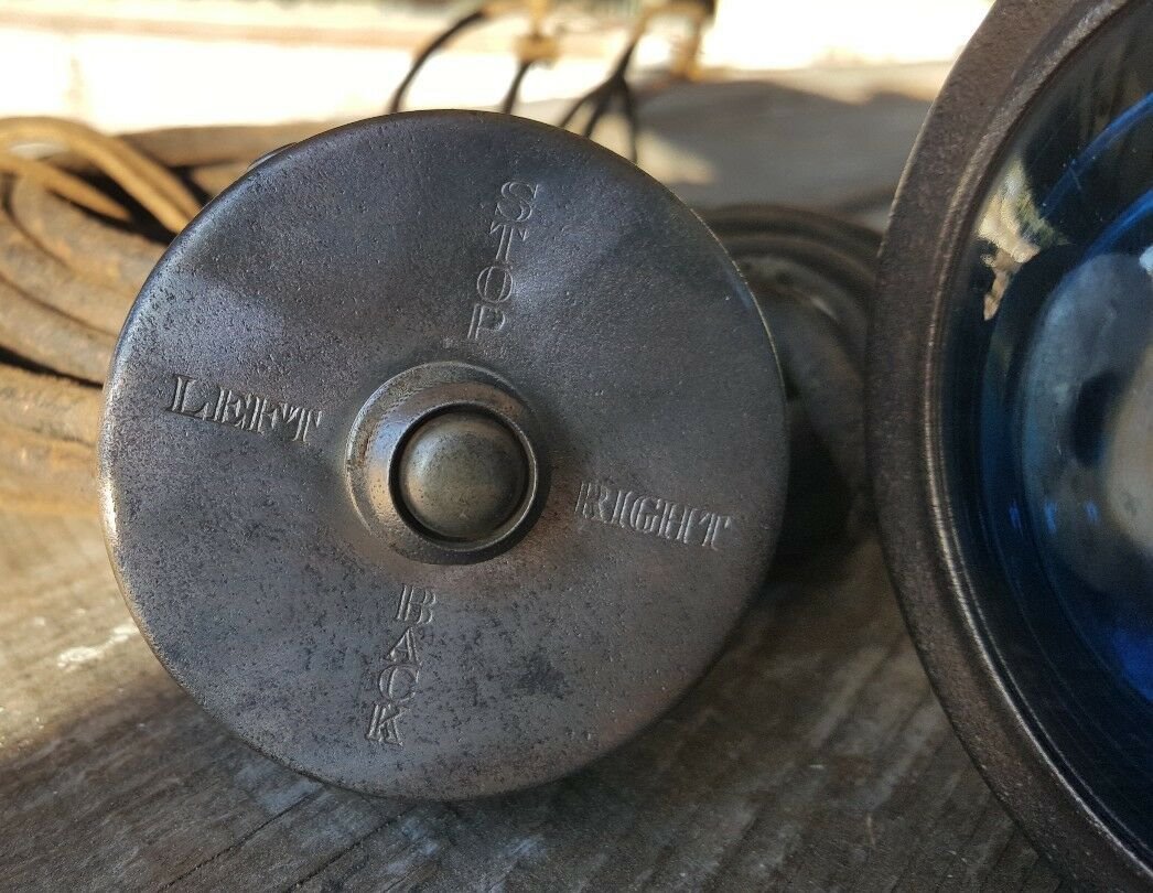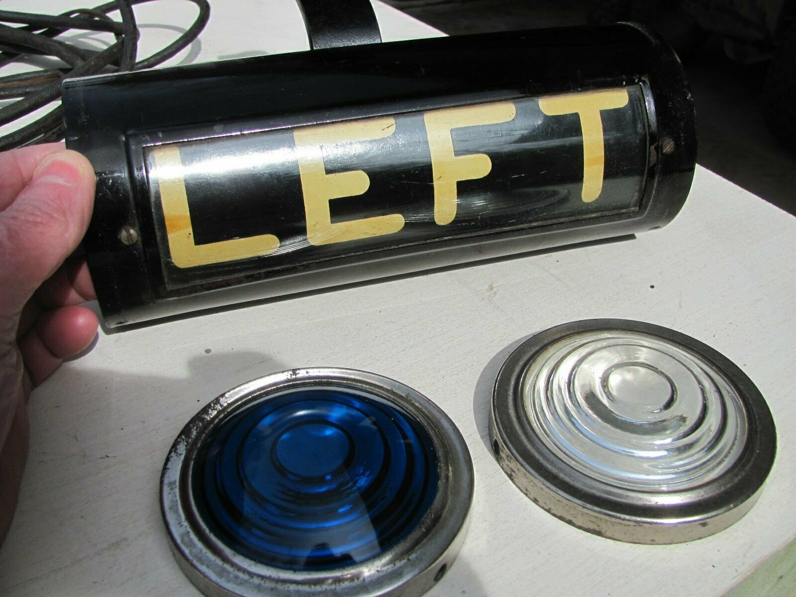 The Left/Right/Stop/Back are on a drum that rotates inside the light housing and are controlled by a switch mounted on the steering column. They have a spade mount and there is a small light bulb inside the drum. What is the significance of the white and blue lens on the ends?