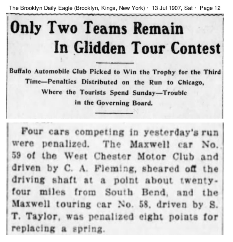 Wagner mentions at the bottom of the article about passing an abandoned Maxwell with a broken axle. This Brooklyn article identifies the owner of this same Maxwell.