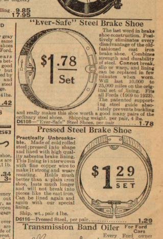A funny thing. I found a set of those at a swap meet a few years ago, from a fellow I didn't know, but had bought several parts from for very nice (read that as cheap!) prices. Milt Webb happened to be standing in the next booth, and saw this, grabbed the band brake shoes from the seller and refused to allow the seller (a friend of his) to sell them to me! I decided to let it go, and not tell them why I wanted them.