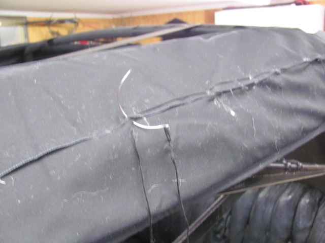 As for a stapler, the air ones are nice, small, and the nose is so small it fits into the Hidem welting strip too, holding the channel open as you staple the finishes to your top. But use tacks in the long nylon or webbing top support runs from the front bow to the rear tack strip, you want to really have secure webbing for the top cover support.