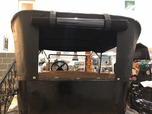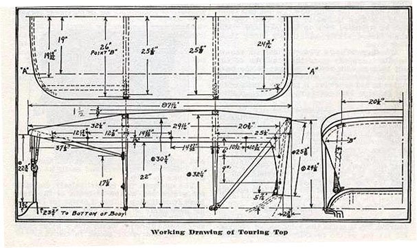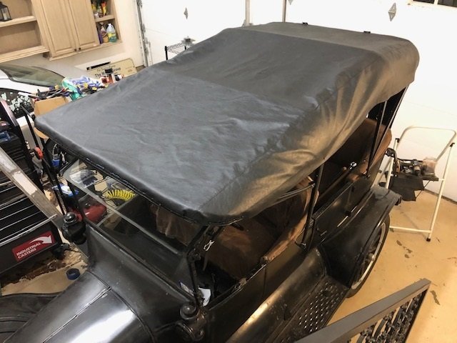 Last Fall I repaired the top on my 20 roadster. the previous owner had put a new top on it after hitting his garage door, but he and his friends had the top front bow sitting about 3 inches above the windshield. I had to remove the staples of the entire top, readjust the middle bow to remain at 90 degrees, and with assistance of the hot sun, stretch the fabric forward over the front bow and replace the welting. I also had to get new pads and straps as the ones on the car were too short. The windbreak fits well now and all looks great, until I hit about 30 mph or a headwind. the top tries to lift in the middle and the windbreak blows in over the windshield. My 23 touring has a snap fastener in the middle of the windbreak and that prevents this from happening. I'm tempted to put a snap, or maybe a common sense fastener in the middle of the 20 roadster windshield frame and windbreak, but haven't been able to take a close look at anybody's to see what is correct.