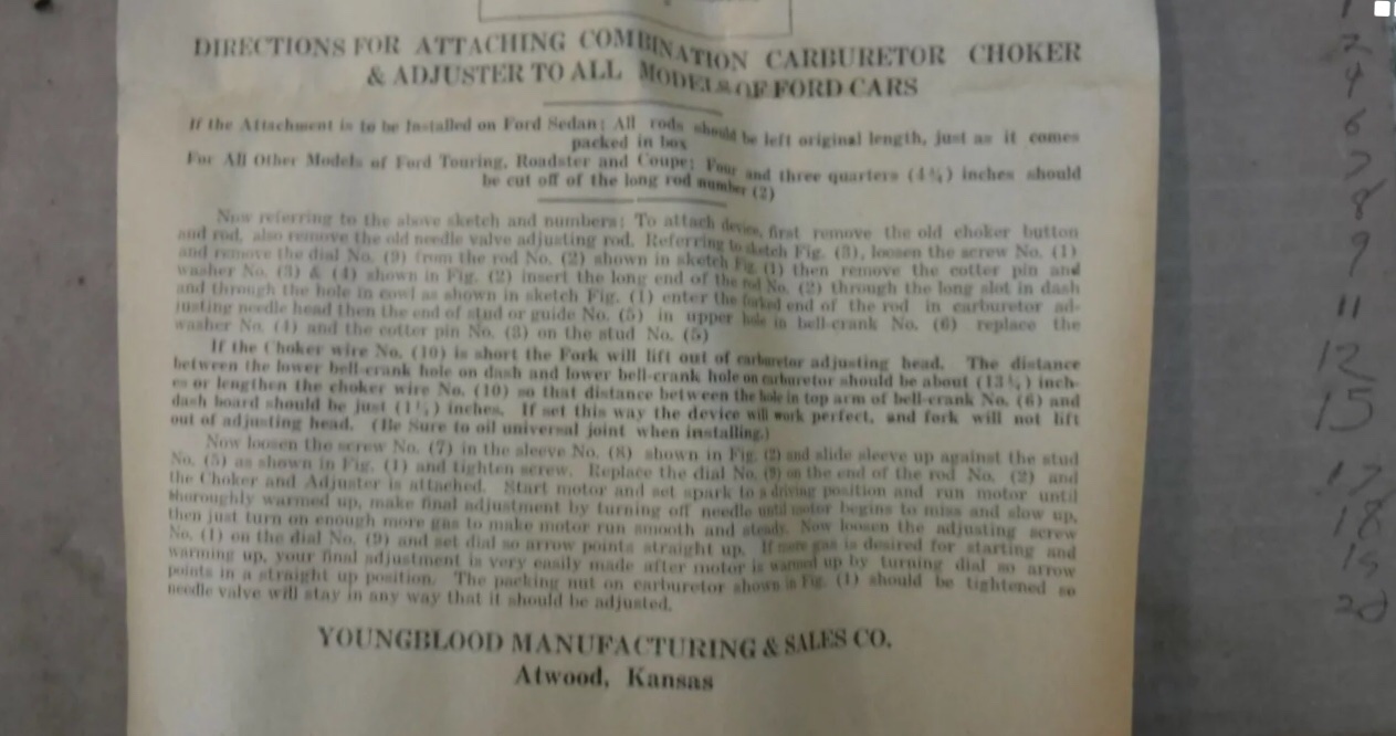 I came across this last night at a good friend's shop because I was in need of a knob for my choke rod. Only a small bit of the box and instructions remain, but what does, appears to be a cool 2 in 1way to adjust your fuel and choke your engine for startup. It was made by the Youngblood Sales and Manufacturing Company Atwood, Kansas. Anybody have one laying around with the intact instructions? Did anyone ever use one? Thanks for your insight.