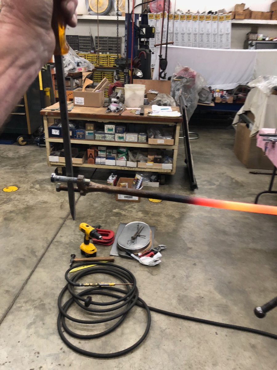 Had a little more time so I started the twist modification and reforge of the steel. The drag link needs to be twisted approximately 84 degrees to the right.