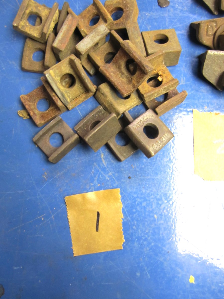 Joseph, the number ones are indeed lugs for Kelsey 88 rims. At $16 each for new, precisely CNC machined reproductions now available from the vendors, you have a small fortune in that heap! Yours are much nicer, showing minor flaws, deforming and some numbers/markings which make originals so much more interesting.