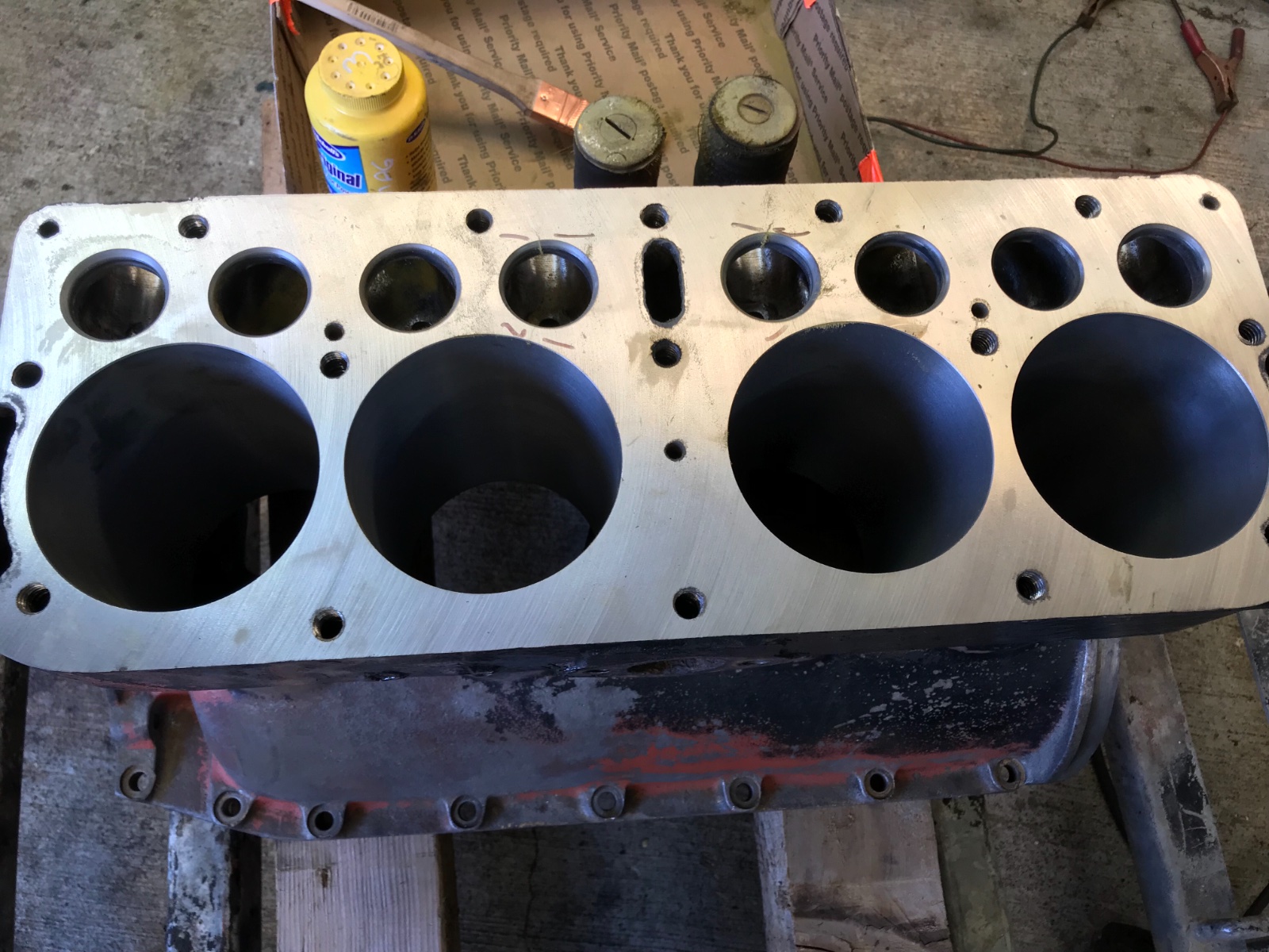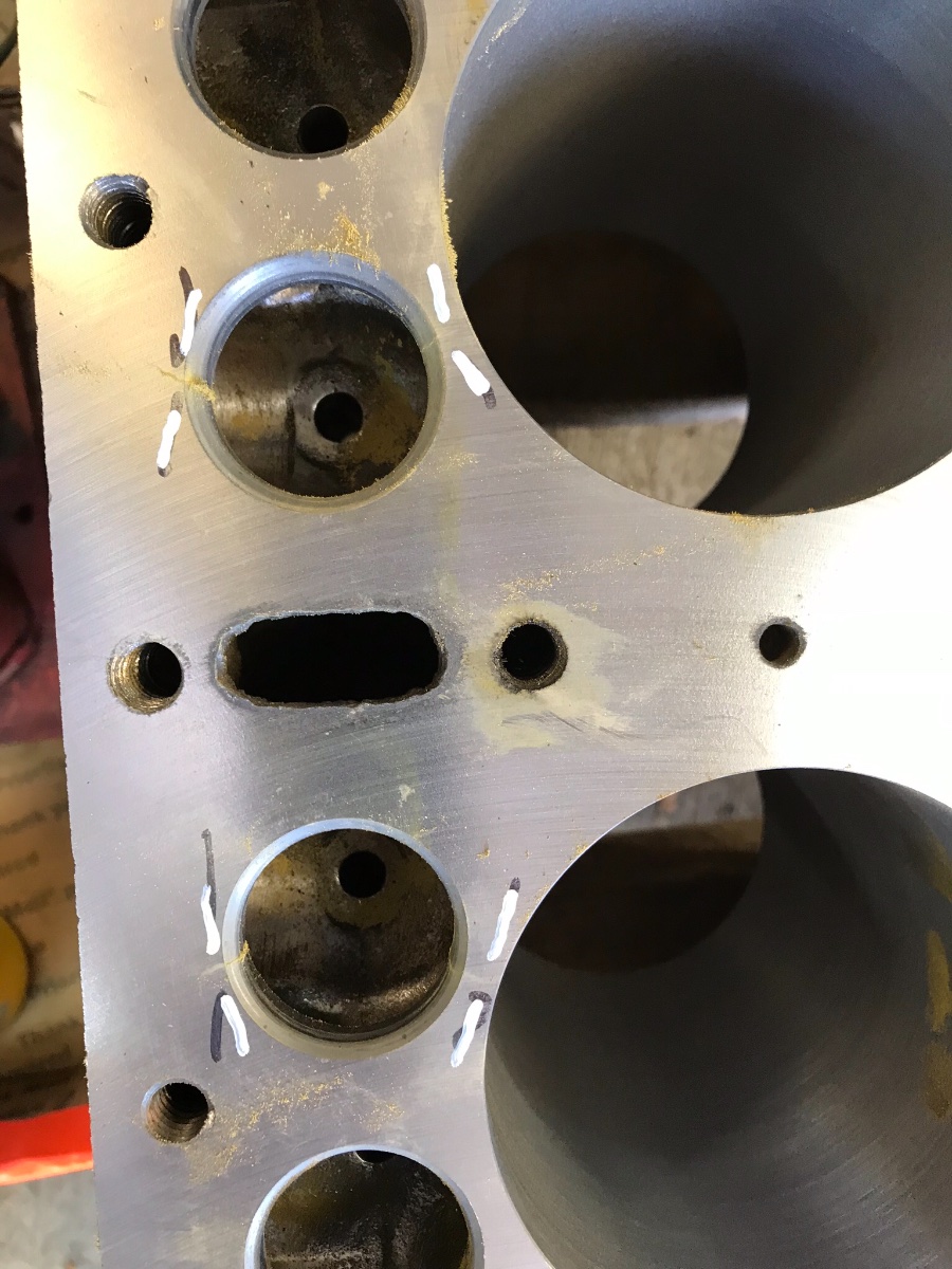 Major bummer today... I got the block back from the machine shop and it was cracked in several spots. Luckily I have 2 more. What a pain. Uncertain if it happened pre or post boring, but from the looks of the cracks I'm guessing pre.