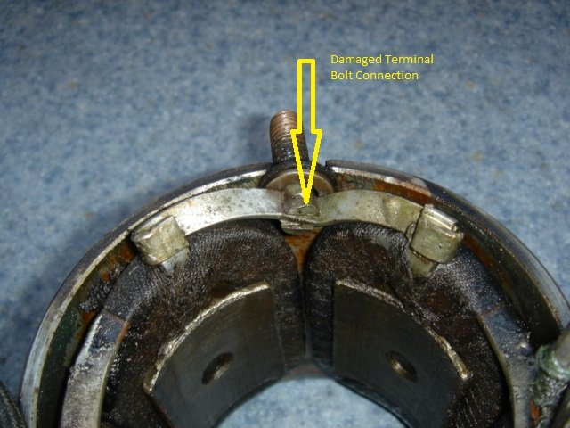 It can be repaired by replacing the terminal bolt with a kit available from Lang's Old Car Parts. The kit has a new terminal bolt and buss bar that is silver soldered and far superior to the original soldered Ford part. Complete instructions are included with this part. The only special tool you will require is a 250 Watt soldering iron.