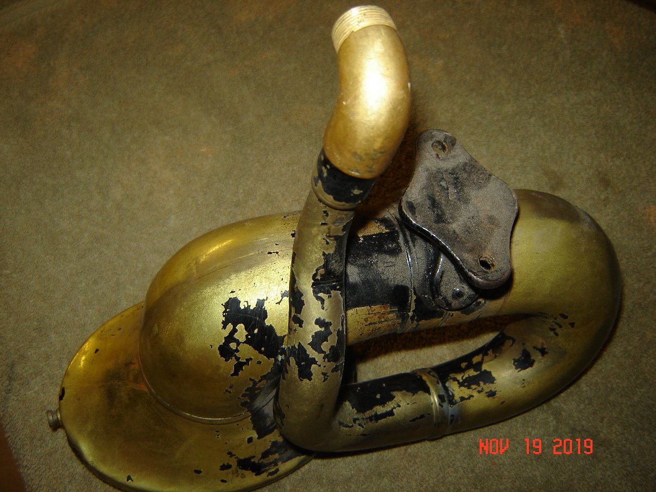 Here are some pictures. You can see the scalloped mounting bracket, also the 90 degree elbow that screws on instead of the straight tube used previously. The 1915 bracket is different than previous years as well. There is a brass tube not pictured that covers the reed and holds the bulb.