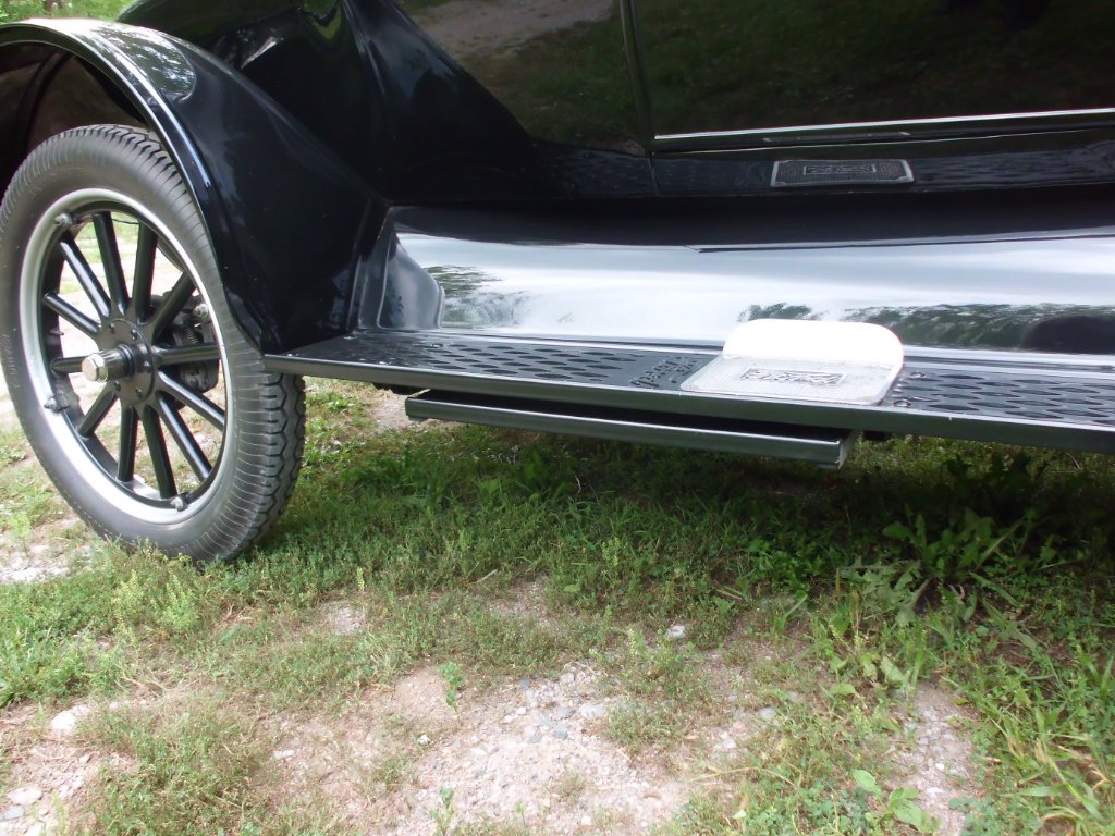 When I had elderly and those with disabilities want to ride in my Touring I made a box like wooden step (wide & stable) that I would place next to the running board that was 1/2 as high as the running board so they could step on it, then onto the running board to enter the car. I had a non skid tape on top so it wasn't slippery. It was built so that if we were going out somewhere and getting out of the car at our destination I would strap it on the running board, get out and place it on the ground for them to step out on. If we were just riding local and coming right back to our starting point I would just leave it there. Of course I always made sure I had a hold of their arm as they entered and exited the car.