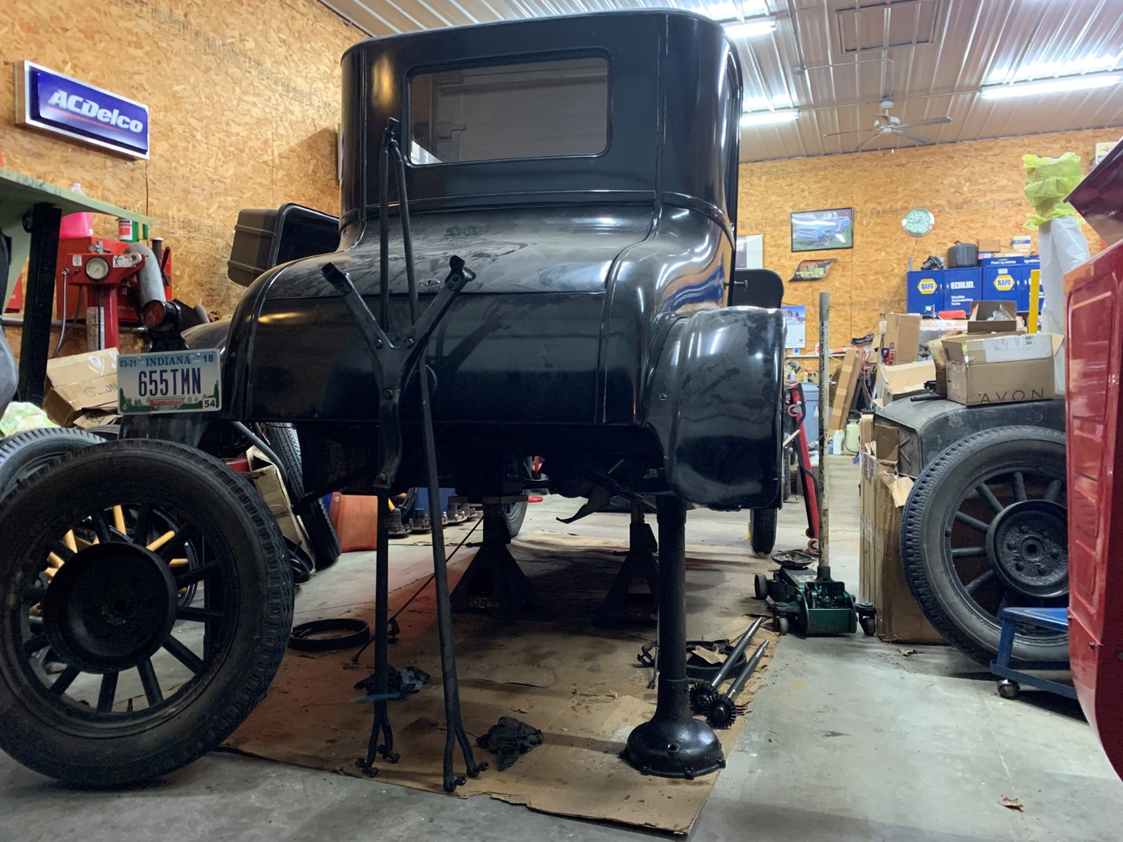 I just pulled the rear end out of my 26 coupe. Just like the roadster, I placed the stands as far back as I could to clear the radius rods. It is very stable.