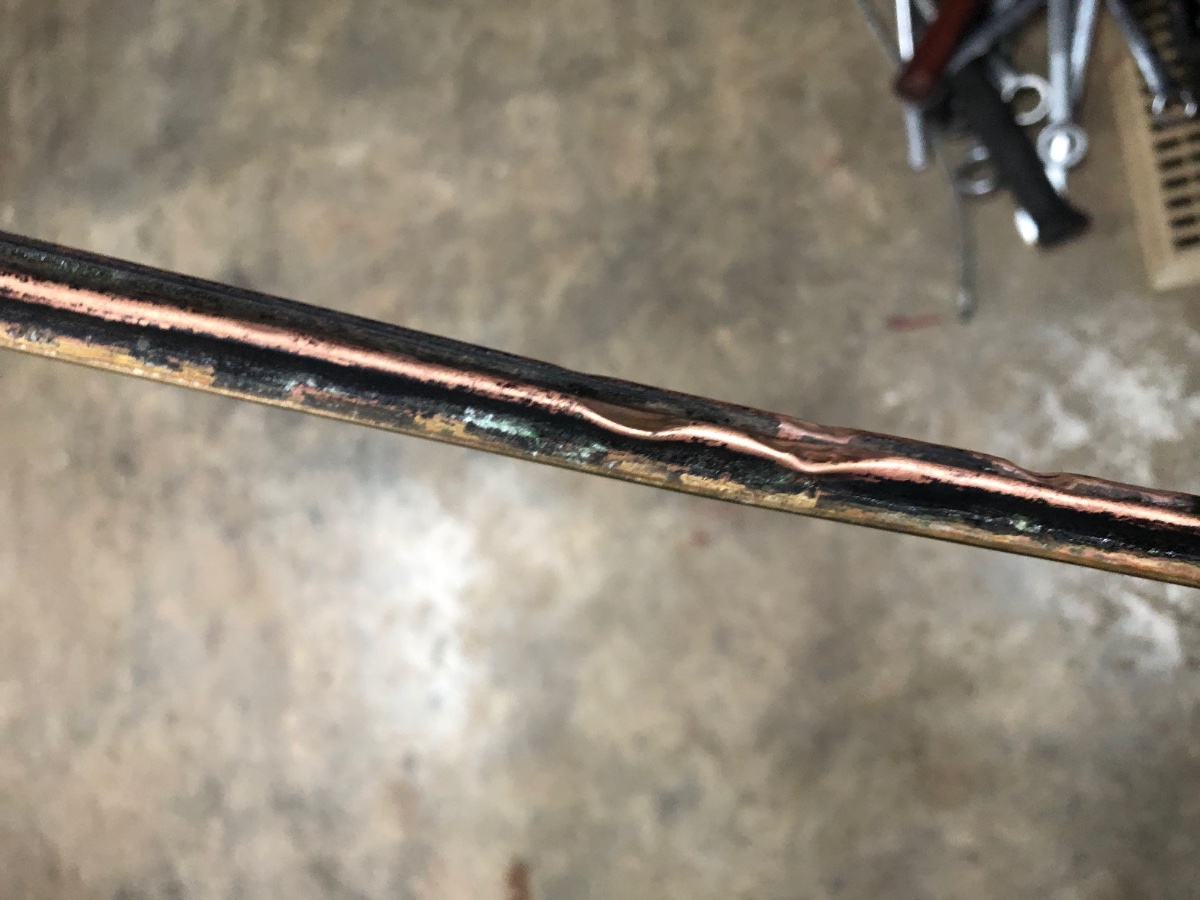 I also made an OD forming fixture in the form of a 2 inch long wood block, with a 3/8" x 3/8" slot cut lengthwise. This allows you to form your bends slowly and over a larger area, resulting in less wrinkling of the brass. This limits spreading open of the channel as the bending occurs.