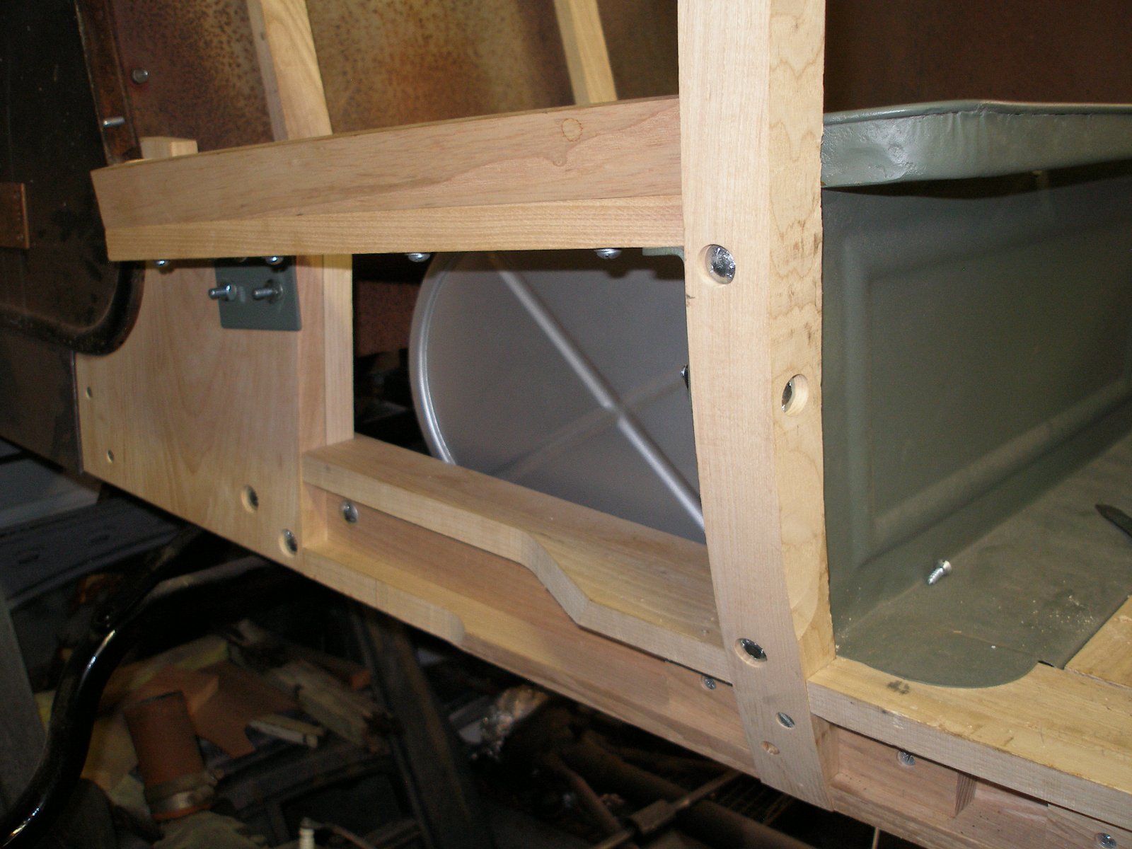 Two #12 wood screws in a diagonal pattern attach the pillars. The pillars also have additional fasteners for the front seat heal panel bracket and for the frame bracket attachments and these are all countersunk. The metal skin nails to the underside of the sill.