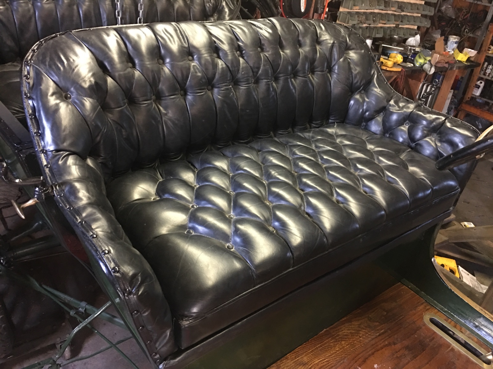 I have reached a critical point on the restoration of the 09 as I completed the upholstery and that was the last item which required new materials. I used the original (1955?) seat covering which were leather over foam and horse hair. I had to use new trim and upholstery nail and new leather on the doors. All that is now completed.