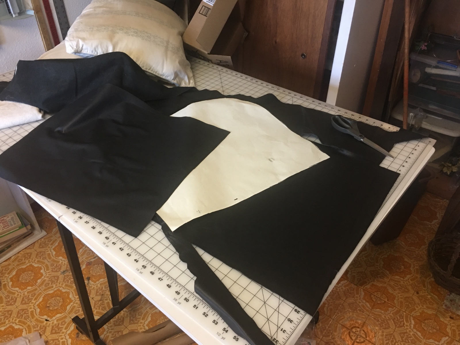 I forgot to add pictures of the door leather being cut. I used Heathers sewing room, first time it's been used since 2017