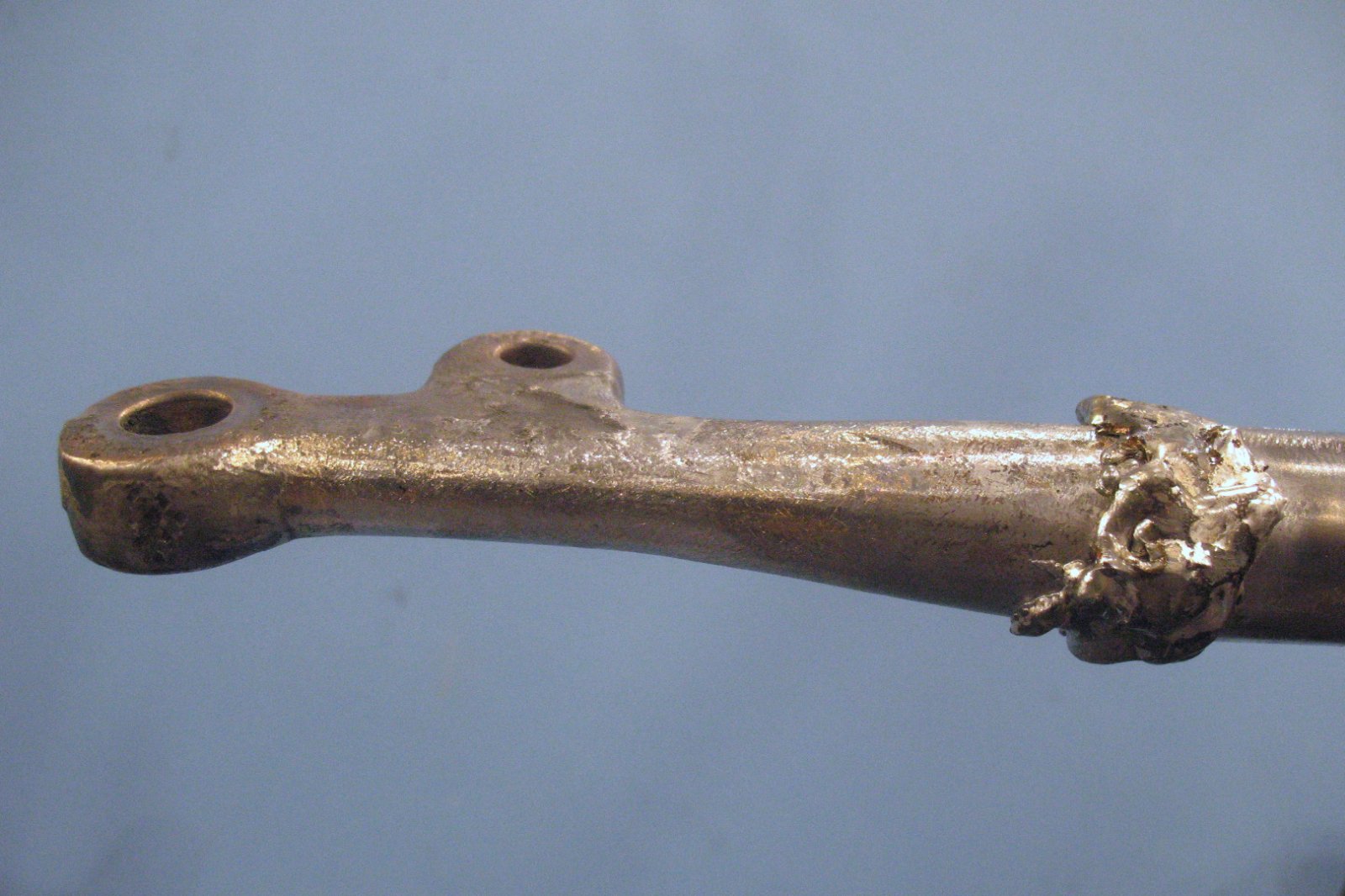 So, using a 000 tip with the smallest flame I could manage, I built a glob of solder around the joint.