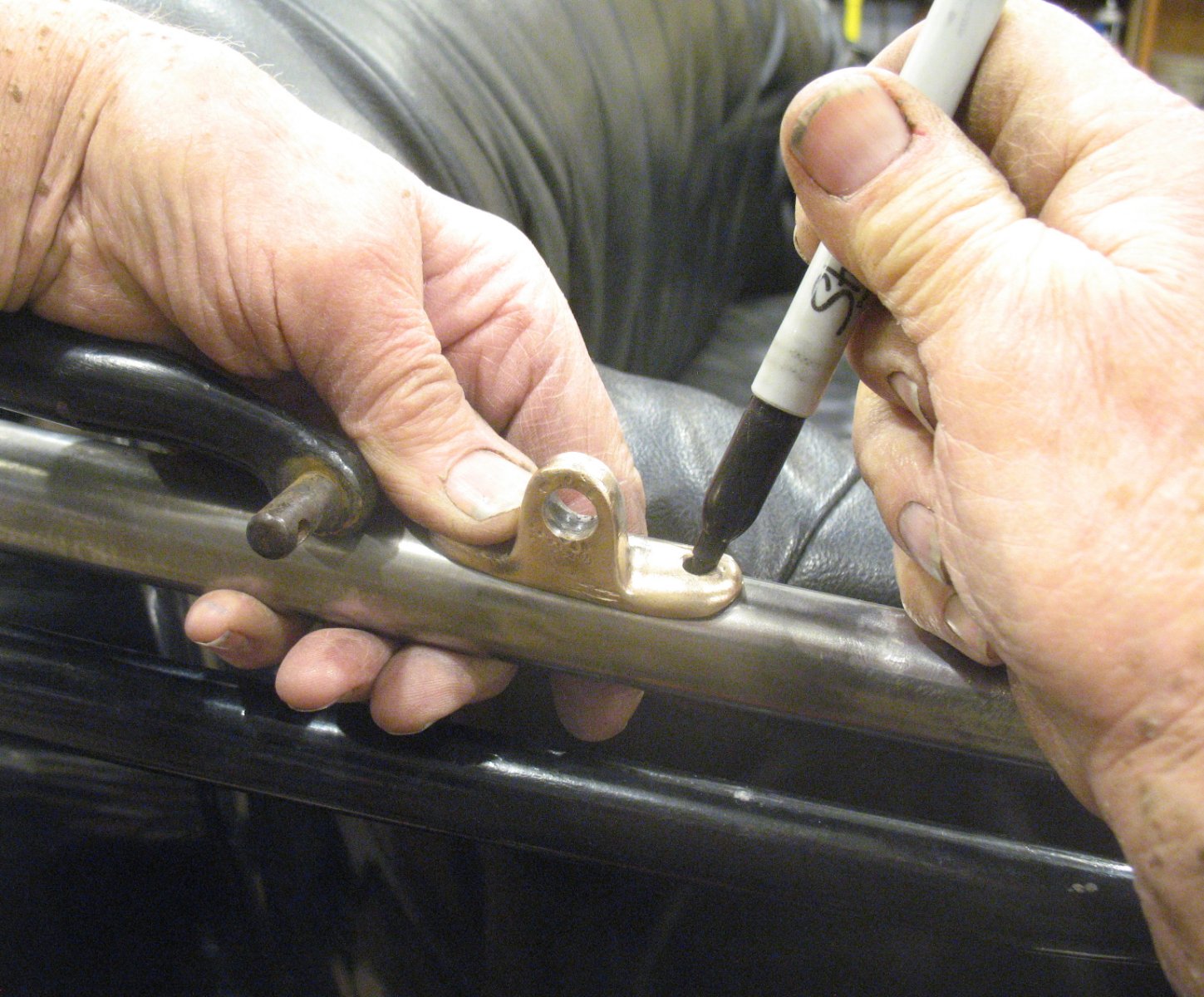 Steve, That looks a lot better! Did the new perch fit good and snug in the axle bore? I was concerned that it might have been a little worn since it twisted around so easily. You were very lucky that day!! Glad I was able to help you get it patched up and back on the road. That was a lot more fun than the auction.