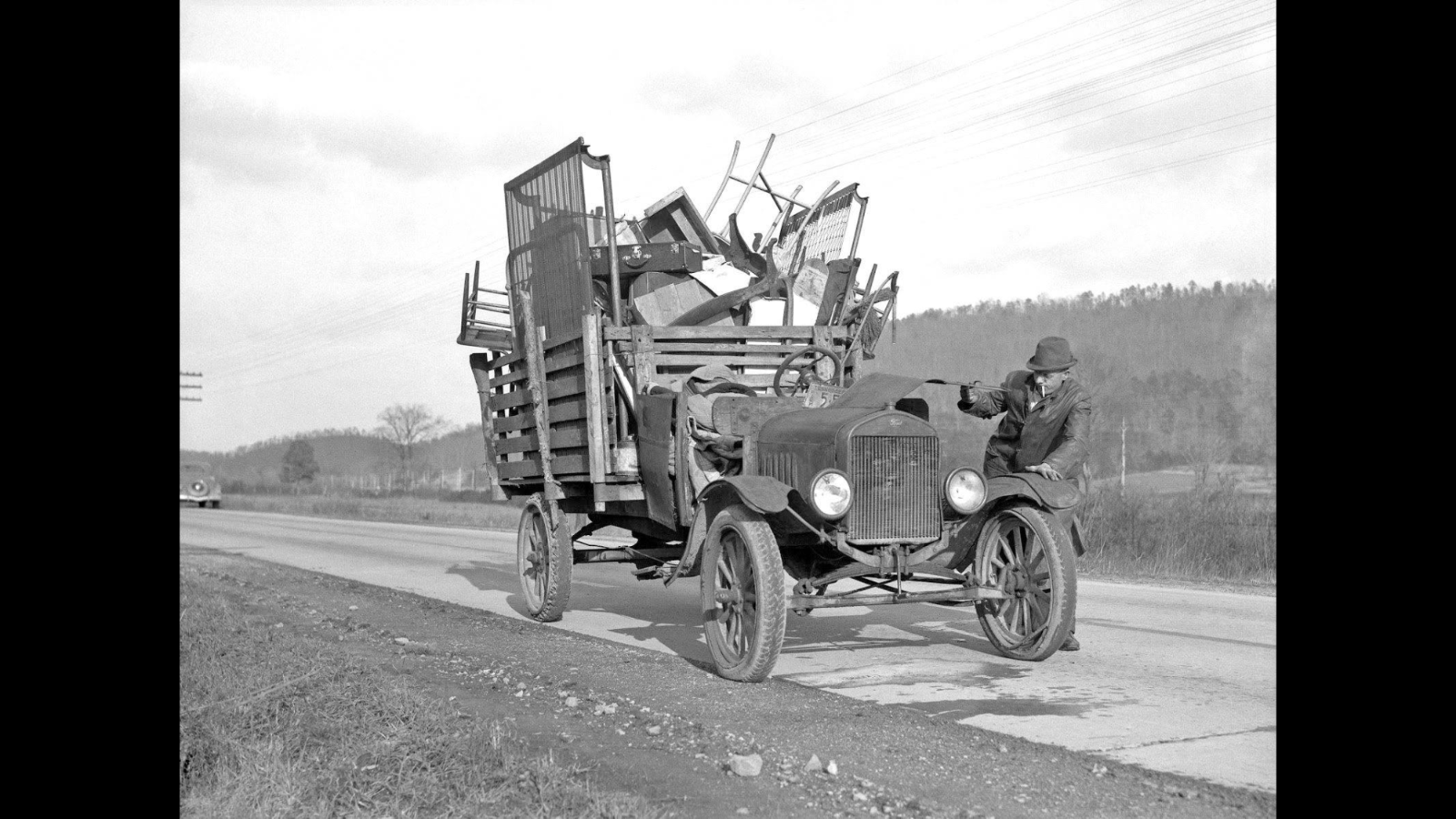 Steve -- The photo is credited to Arthur Rothstein a photographer working for the Farm Security Administration during the depression. The information with the original photo stated: “Tenant farmer moving his household goods to a new farm. Hamilton County, Tennessee. The photo was taken in 1937. (Page 100 of Sorenson’s “Fords Forever” adds Aug 1937).