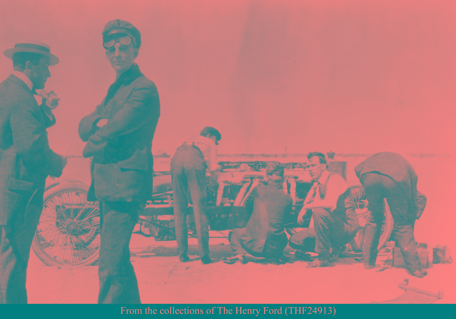 1905 photos of Henry Ford, Frank Kulick and the 1,000 cubic inch six cylinder Ford racer.