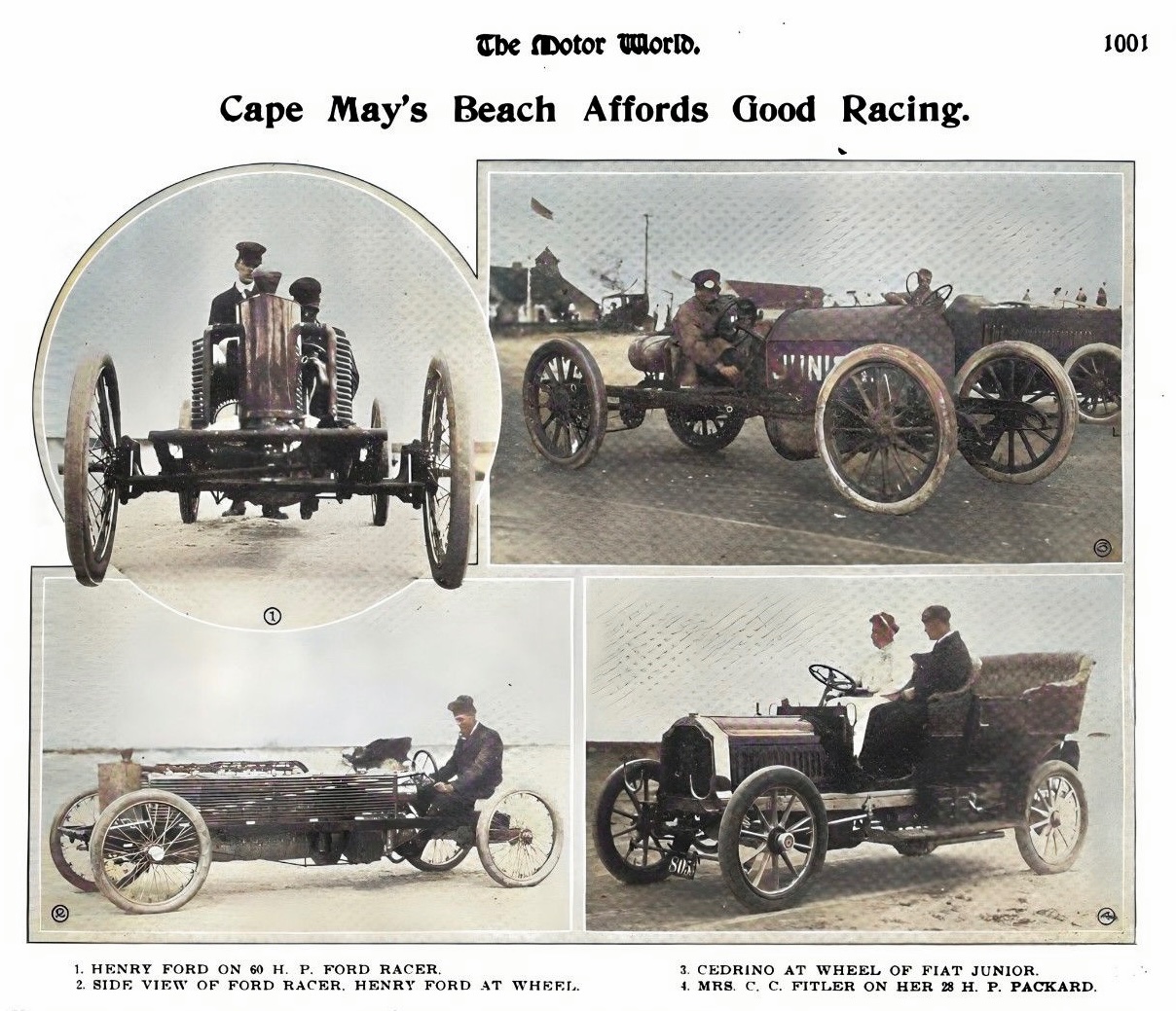 Initially Ford hoped the trophy race would be sanctioned at the upcoming New Jersey Beach Races, held at the end of August (Cape May, New Jersey) and first week of September (Ventnor Beach, Atlantic City, New Jersey). The Dewar Trophy race wasn't sanctioned, but Ford, as well as Walter Christie with his Christie Special, Louis Chevrolet driving a Fiat, and A. L. Anderson driving a Darracq did attend the beach races. During the second race at Ventnor Beach (Atlantic City), Ford beat the Darracq in the competition mile (the same race the Dewar Trophy was sanctioned for), setting a new world's record. However, the record was disallowed by the racing committee because the Ford six cylinder racer crossed the start line ahead of the Darracq (these were rolling start races, with the cars starting out 1/2 to 1 mile ahead of the start line, in order to be at or near full speed when reaching the mile start). While the record was not allowed, it showed that Ford with his six cylinder racer was capable of beating the time set by Ross earlier that year at Ormond: