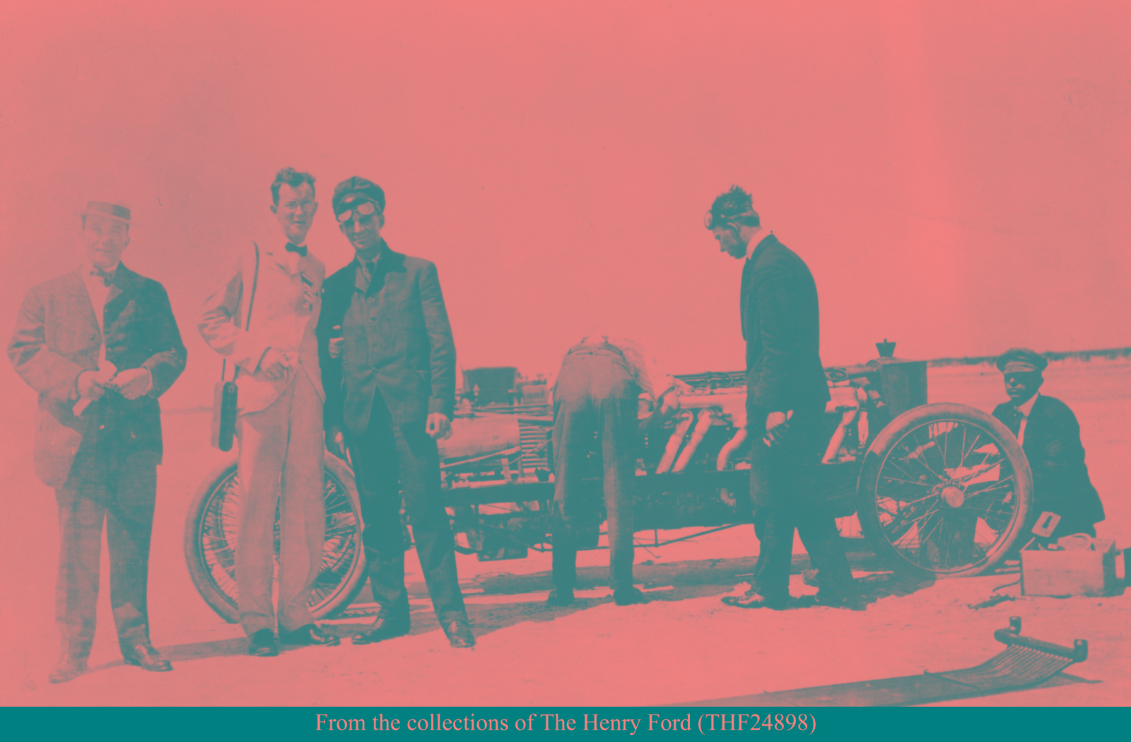 1905 photos of Henry Ford, Frank Kulick and the 1,000 cubic inch six cylinder Ford racer.