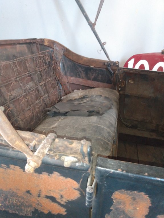 You need to be a member to post in cars for sale. For the administrator - I'm only the poster, the boss man's member no. is #50232. If you don't approve of this that's fine. 25 touring that is a rather complete car. Has all top irons, missing the front piece wood.seat springs ,even little end caps on wood. Has wire wheels on now. Started it probably a year ago, back wheels were turning. Fender aren't worth a hoot, but the body is very nice. Lots of grease on the girl, meaning she hasn't been taken apart. Even has engine splash pans. Located in Southern Indiana. 4000.00 . Good candidate for restoration. More pictures upon request. ctleonard64@gmail.com