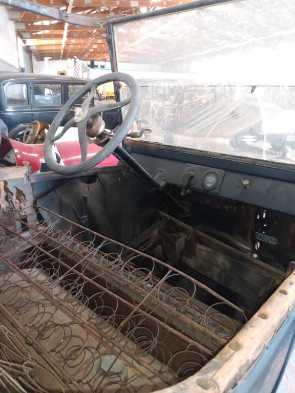 You need to be a member to post in cars for sale. For the administrator - I'm only the poster, the boss man's member no. is #50232. If you don't approve of this that's fine. 25 touring that is a rather complete car. Has all top irons, missing the front piece wood.seat springs ,even little end caps on wood. Has wire wheels on now. Started it probably a year ago, back wheels were turning. Fender aren't worth a hoot, but the body is very nice. Lots of grease on the girl, meaning she hasn't been taken apart. Even has engine splash pans. Located in Southern Indiana. 4000.00 . Good candidate for restoration. More pictures upon request. ctleonard64@gmail.com