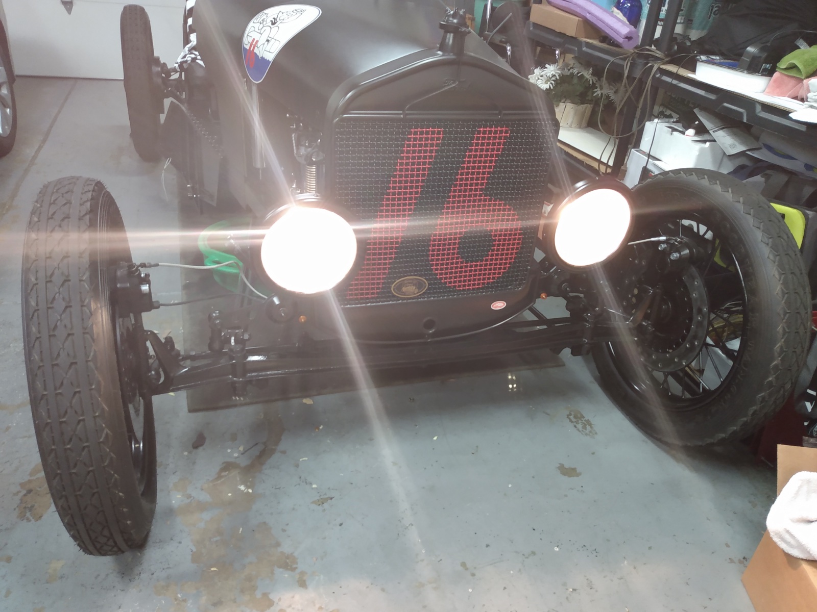 Front and rear turn signals both LED, rear brake and running light are also LED. Headlights are ‘26 mounted to stubby front fender brackets, halogen bulbs, not currently installed. All interior gauges are lighted.