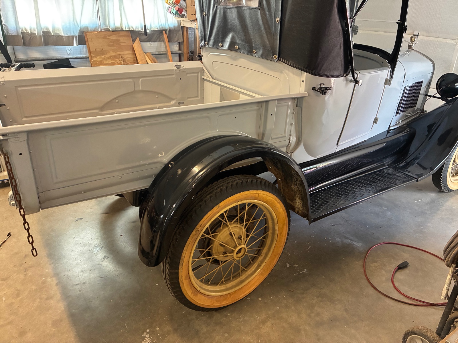26/27 Roadster Pickup. This is a car that I put together out of an original roadster and added a pickup bed. The engine was rebuilt by Al Montgomery several years ago. It has a Ruckstell rear end with Stoltz bearings and Rocky Mtn brakes. 6 volt system with new starter/generator/cutout and new Kevlar bands. Runs on mag. Classtique upholstery and top with roll up rear window. 5 wire wheels, tires are just for rolling, it’ll need new ones. TX title. Email for more pictures/info. $6,500