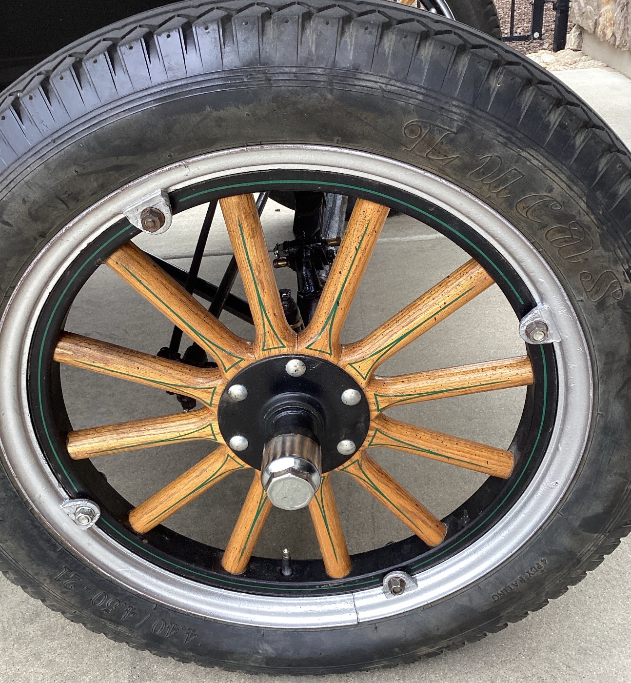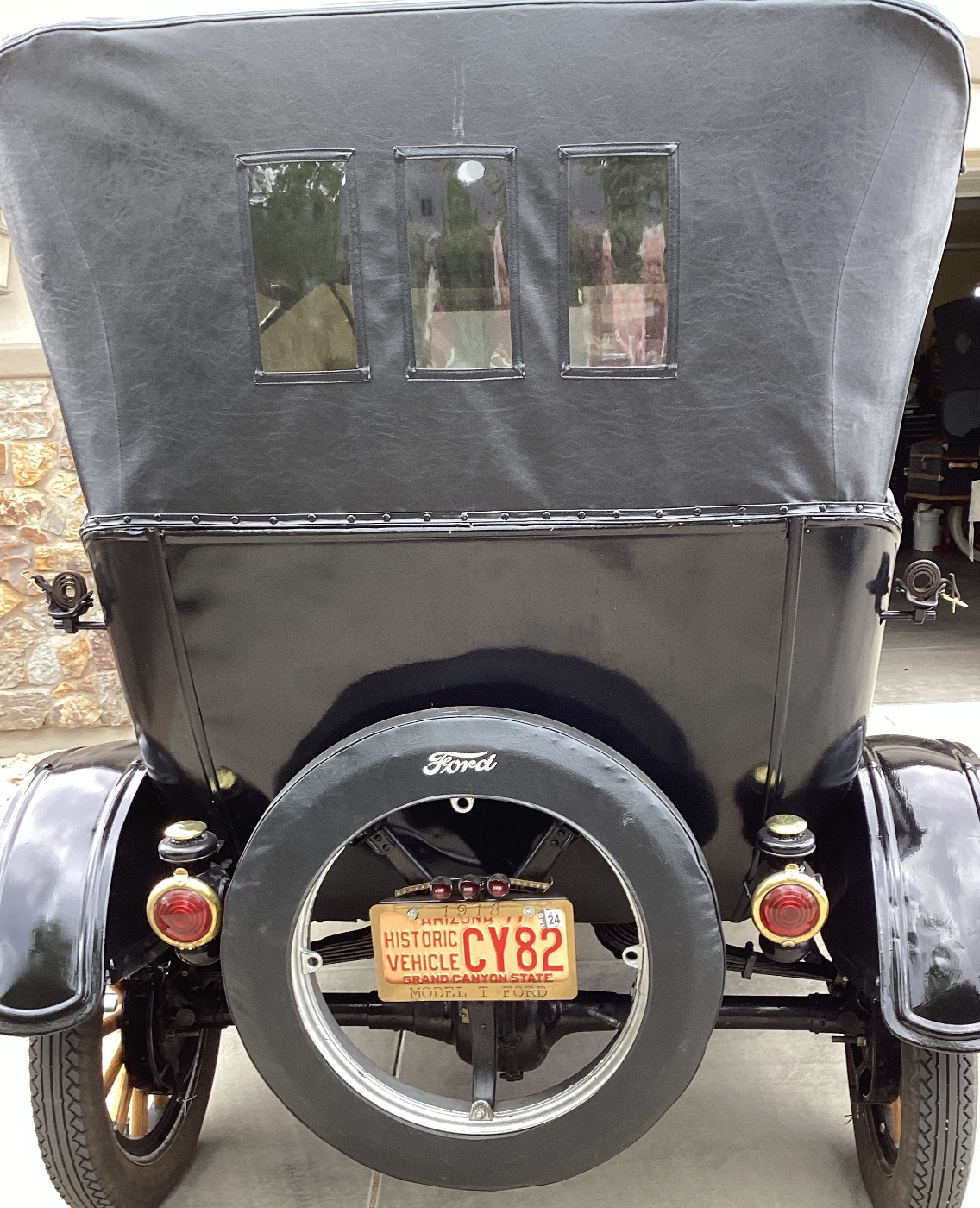 This car has rebuilt motor and transmission, 12 volt system with starter and alternator, new tires on demountable rims, rebuilt wood spokes, new interior and top, brake and directional lights, and much more.