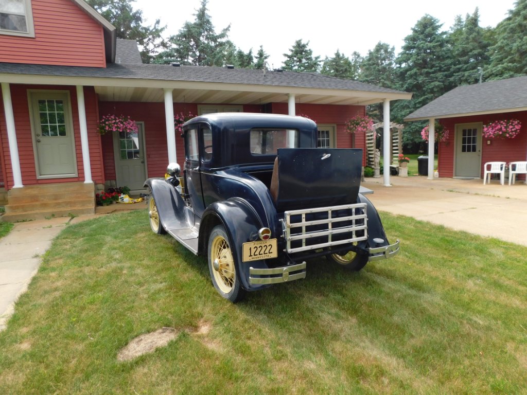For sale 1930 Ford Model A Ford coupe. Runs and drives very good. Steering has been rebuilt. It is all steel. Interior is very good. It has a rumble seet, rear trunk rack, side mount spare, roll down rear window. glass is all good. good tires. good top. It is dark blue with black fenders and tan pinstripe. New battery. The paint is older with scratches and chips. Located 50 miles south of St. Paul Mn. $10,500. No texting, five07458677eight.