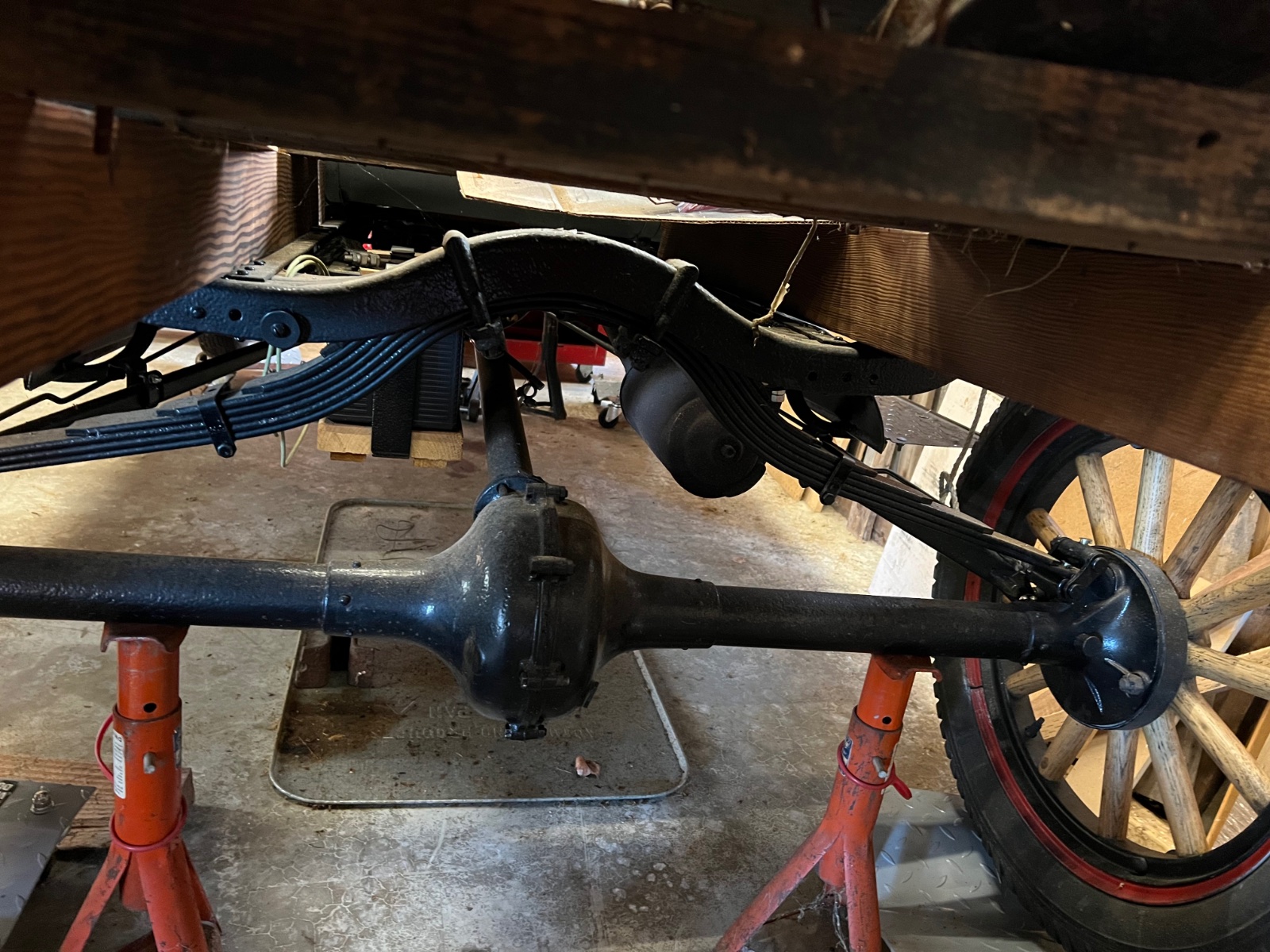 Frame, axles, oil pan, and original hardware for wood pickup bed powder coated 2004/05. Kitsap Powder Coating LLC.