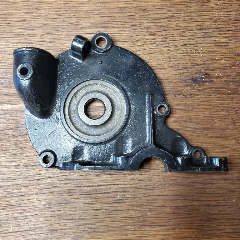 So, you are looking for a 1912 timing gear cover without the built-in oil spout? A standard cover would have a spout, the funky one wouldn't.
