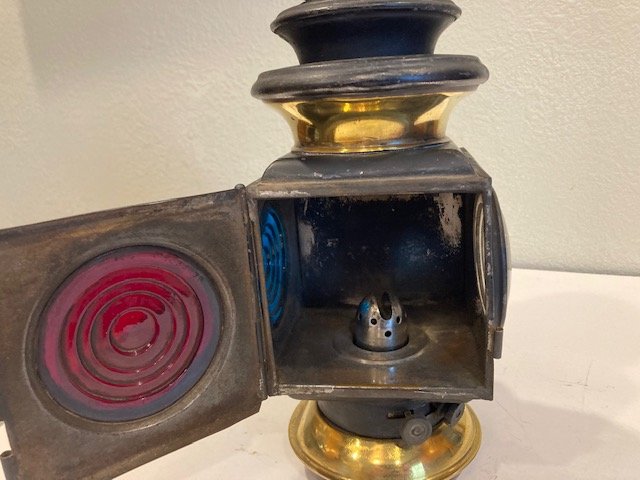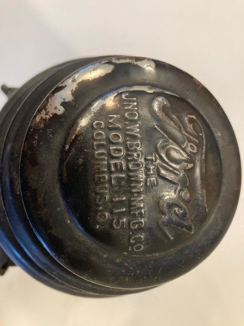 Jno Brown Model 115 taillight, steel top. Black and brass and steel light for 1913-14. $120.00+$15.00 shipping. Check or money order. Email me through this site.