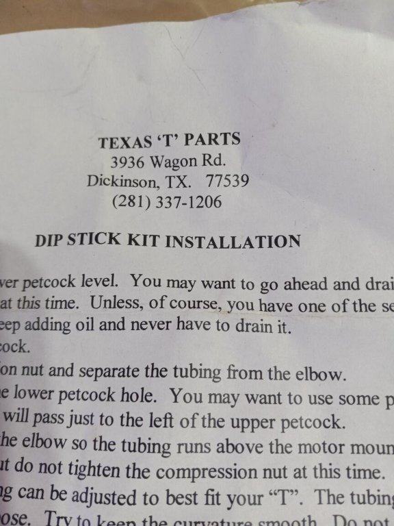Re: Texas T parts dip stick
