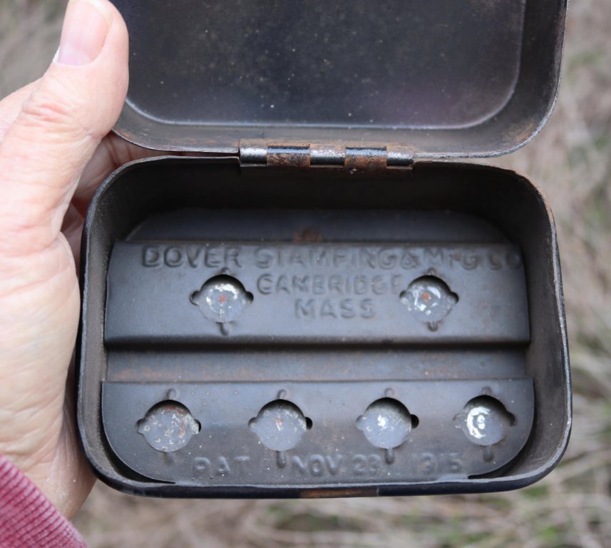 This is a nice period case to safely carry your spare headlight and tail light bulbs in your car. Made by the Dover Stamping And Manufacturing Co. Patented Nov 23 1915. The Bulb's securely spring load into the case sockets. Comes with the bulb's you see. Asking $65 plus postage.