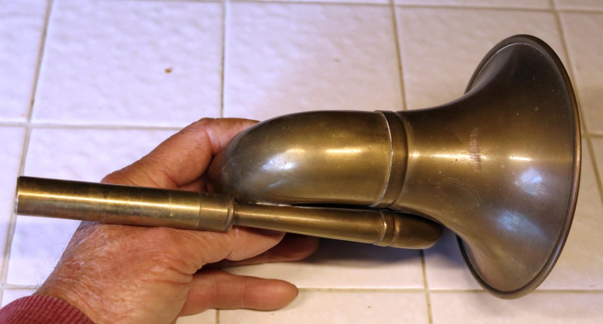 the horn is in nice used condition and measures 9 inches long and the bell is 5 inches in diameter. Works when blown into by mouth. A horn bulb to fit can be purchased from a number of the Model T parts dealers along with a mounting bracket. Asking $45 plus postage. FOUND A NEW HOME!