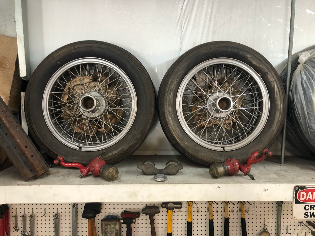 Lock ring style, two knock offs, two hex caps, front (stubby's with spindles) and rear hubs (5 lug). 3 are 20" and 1 is 21" for the right front. With good tires, tubes, etc. Silver powder coated years back. Price $2,400.00 Firm. Email or Text ONLY if interested.