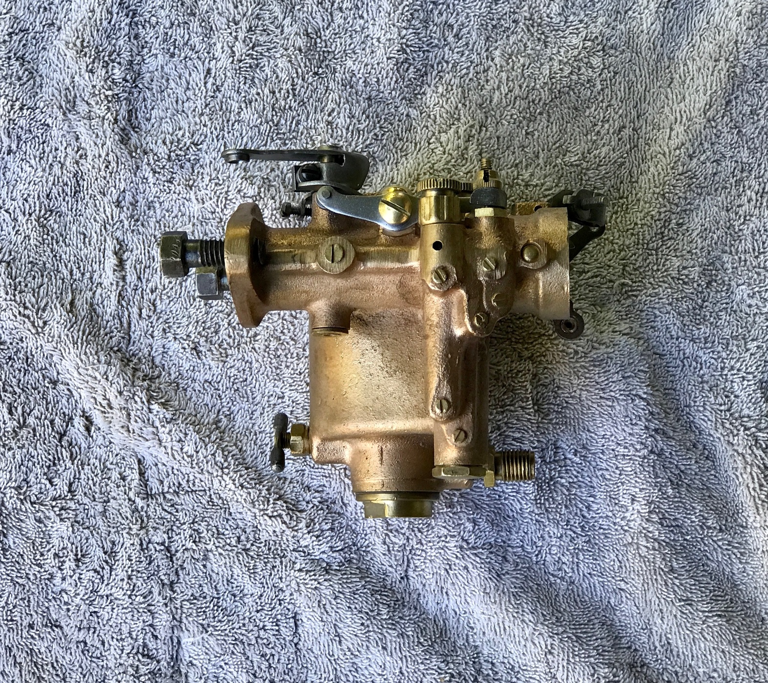 Stromberg OF accessory carburetor. Very clean and complete. Some play on throttle arm. Float needle needs some attention to seal properly. Will need rebuilding, but a very nice start and hard to find complete carburetor. 350 includes shipping US.