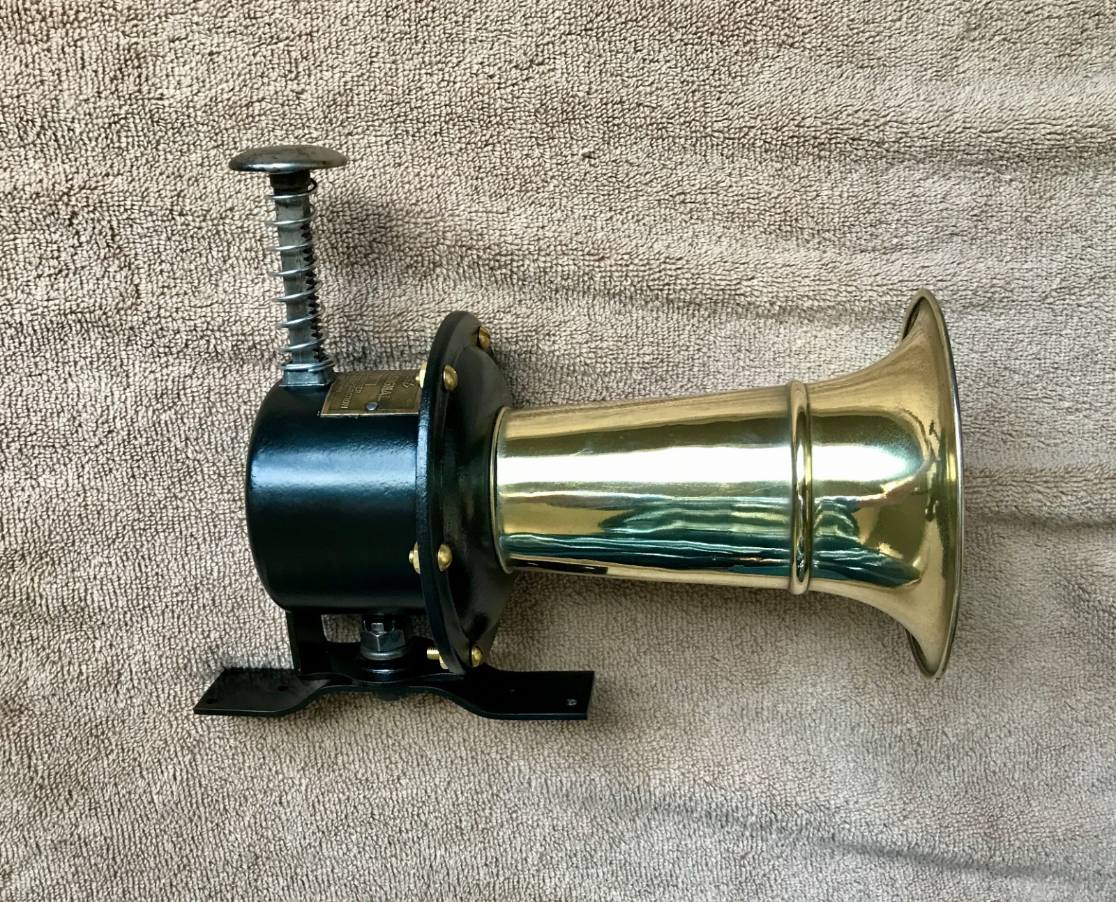 Original Stewart Warner brass hand horn. Excellent condition, internal gears and mechanism nice and it puts out a very loud and crisp “AAAwOOOOOO!” Brass funnel has some minor dings and ripples, but overall very nice and has a nice shine. Stewart Warner are some of the best and reliable hand horns. 260 includes shipping.