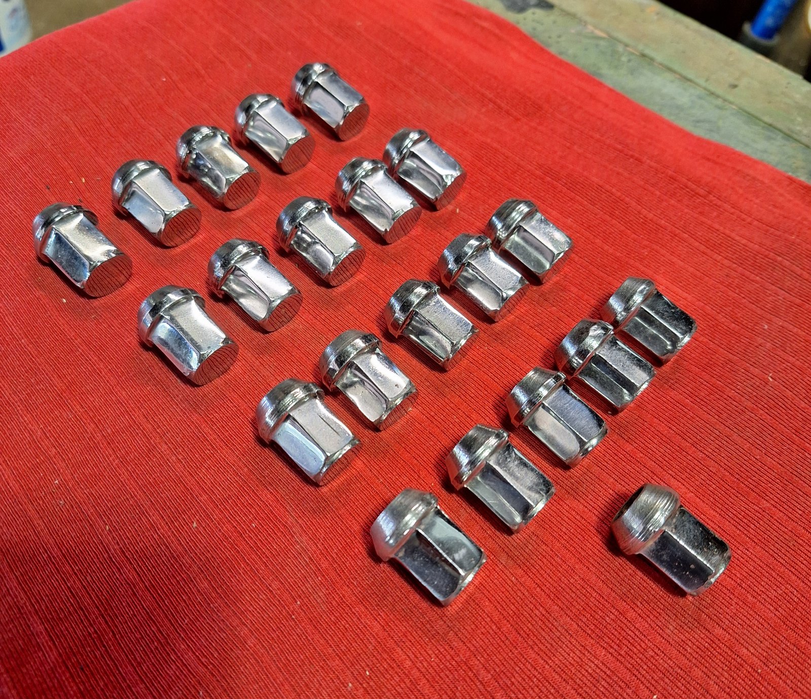 21 original Lug nuts, re-polished and re-chromed. I had these done for my speedster but never did get around to swapping them over before I sold the car.
