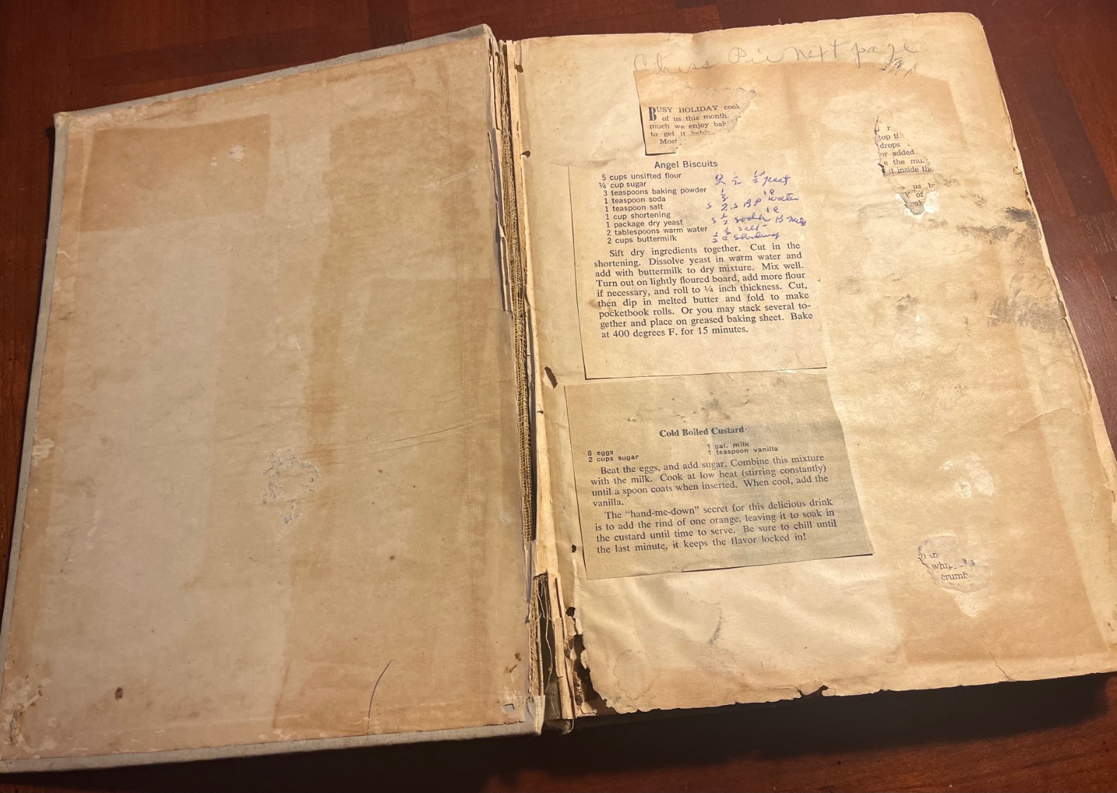 The book was originally almost 500 pages but pages 55-104 are missing. Believe it or not, long ago someone also glued recipes to some of the pages in the beginning of the book. The recipes could probably be carefully removed. The good news is that the Model T section is still complete and intact.
