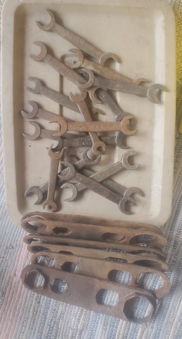 Ford script wrenches with out the T parts numbers all are script except the "1349" hub cap wrenches those show the most abuse but are usable for driver cars. All are 8$ each plus the ride