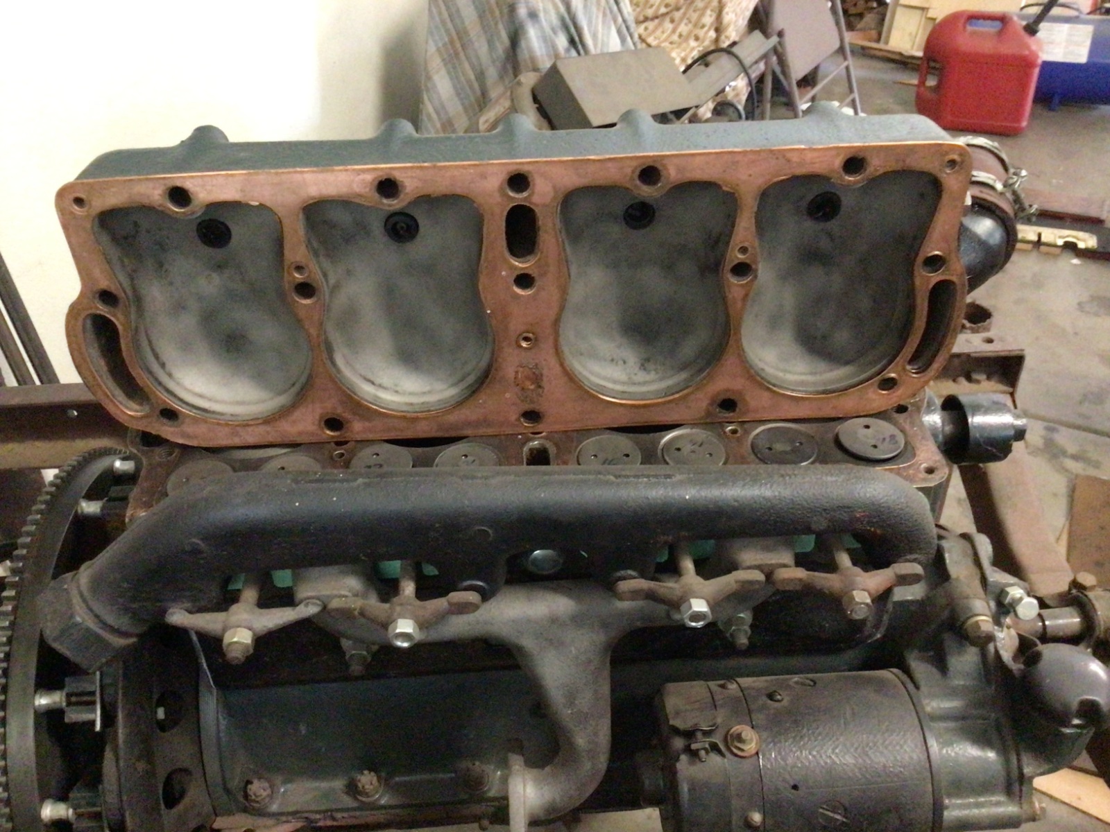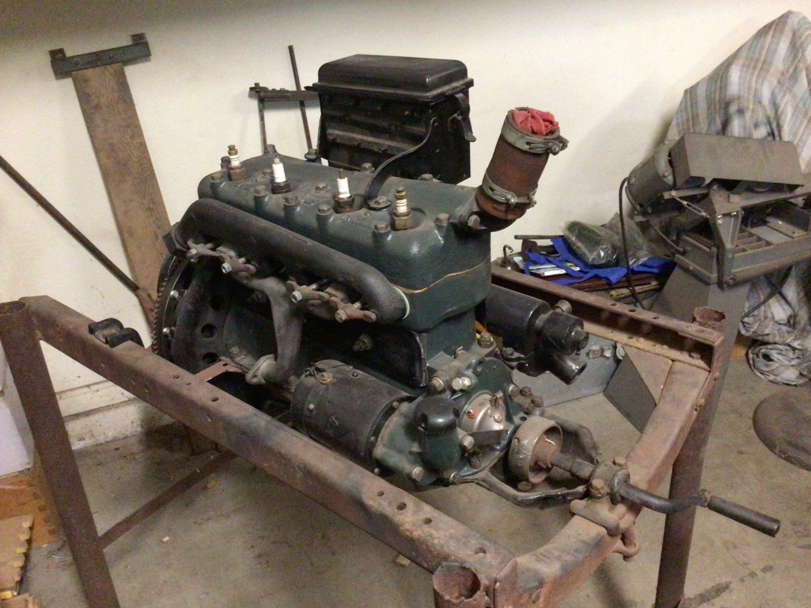 I purchased this years ago and believe the previous owner rebuilt it but never started it. The oil pan was clean and and it had all new gaskets. I did make a note that it was a .040 over re-ring. I do remember that I also lapped the valves, but do not remember if they were modern or 2 piece. It has an earlier transmission “narrow brake drum”.