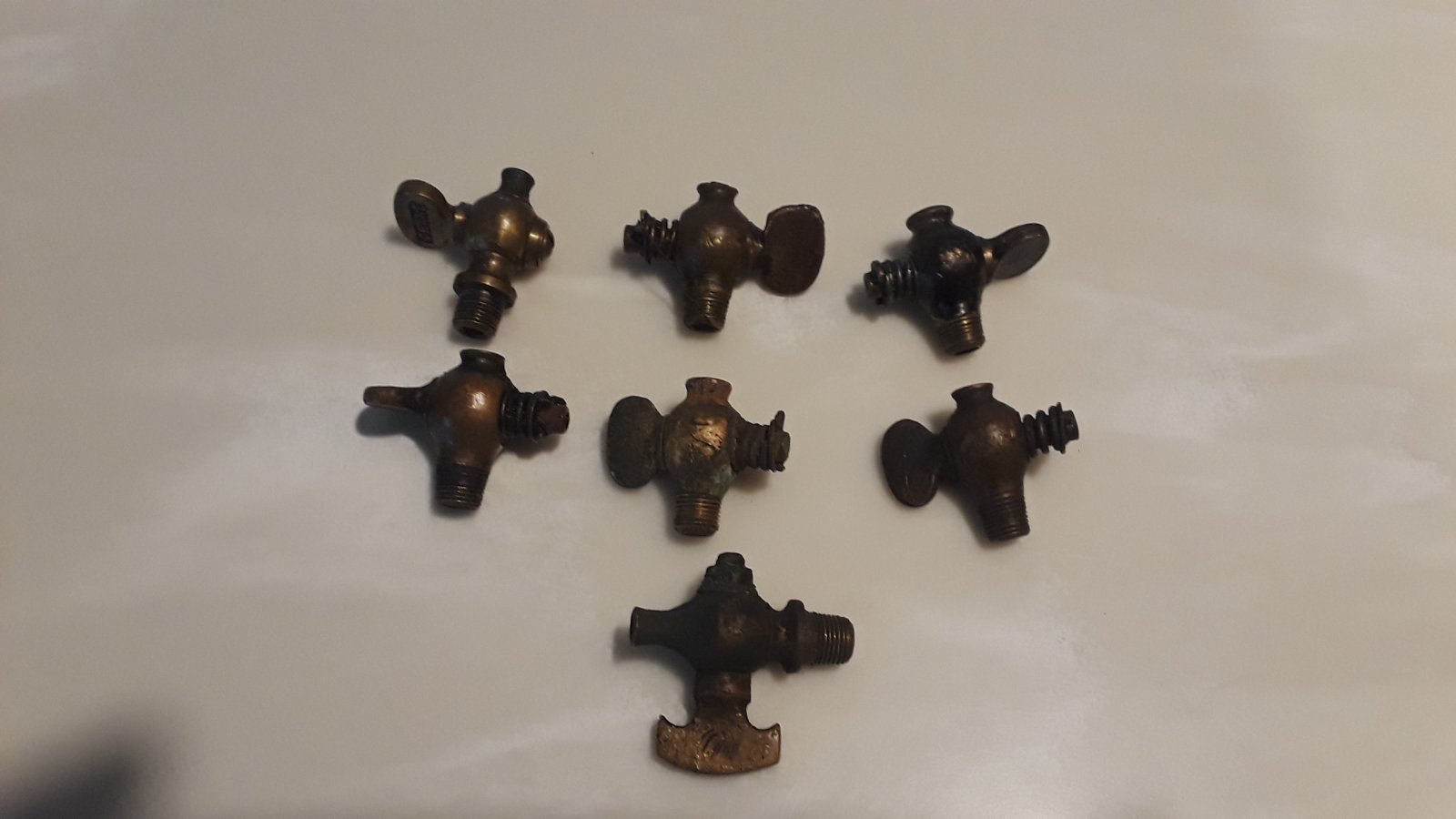 I was interested in the one at top left. It is just like the ones I had on my 1912 van, having the screw and internal thread to hold the tapered piece. But, it has a parallel thread and shoulder on the body, whereas mine have the same tapered thread as all the usual pan petcocks.