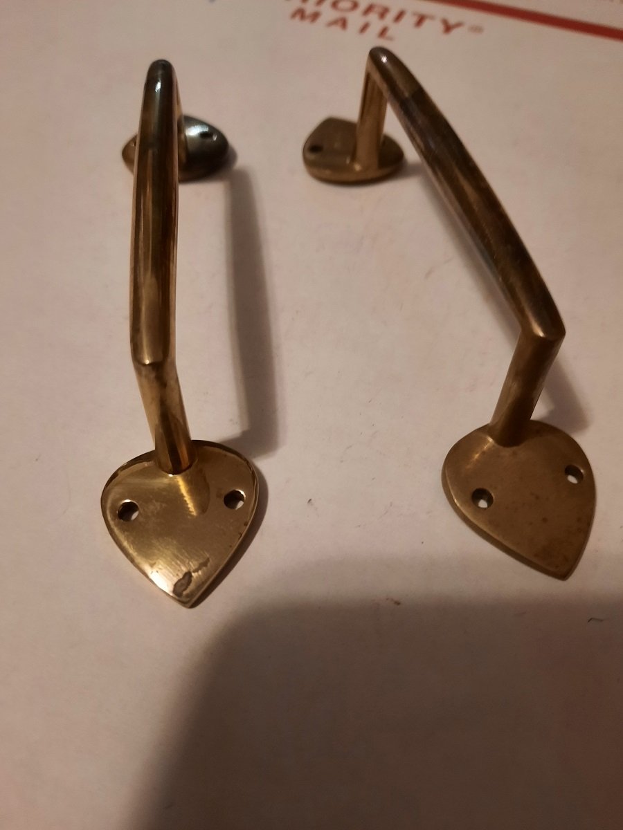 For sale: Brass hood handles. Very good condition and never been used $25 for pair plus shipping