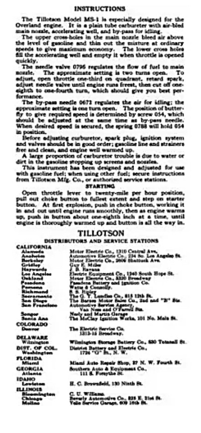 Re: Tillotson MS 1E carburetor for WILLYS & OVERLAND 1925